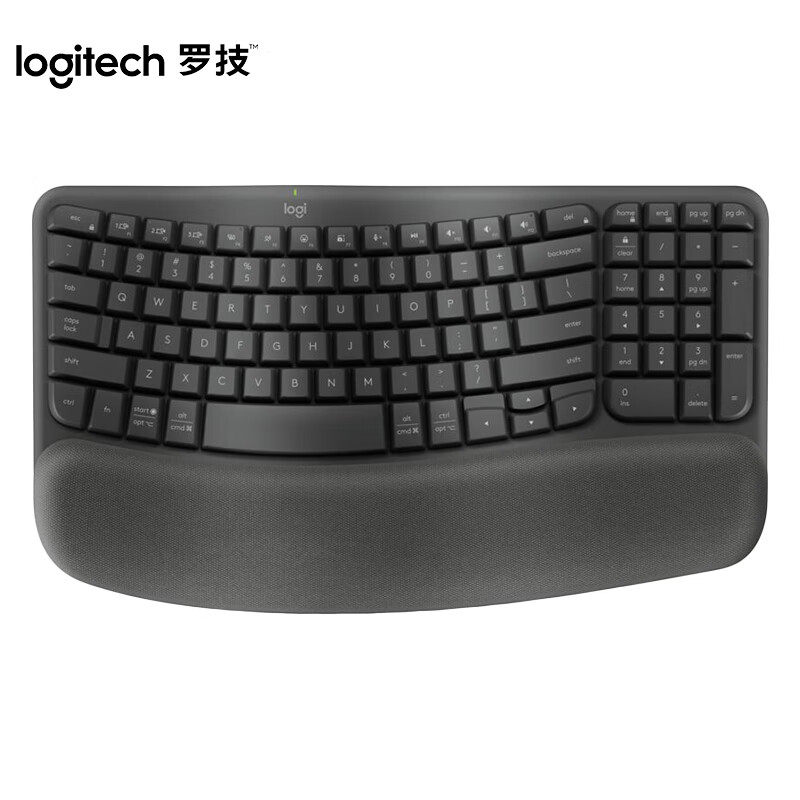 罗技WAVE KEYS无线蓝牙人体工学波浪键盘掌托办公舒适用平板电脑