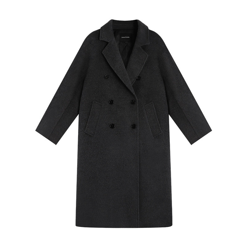 pusumede【现货6.5折】杏色高级毛呢外套女宽松显瘦羊毛呢子大衣