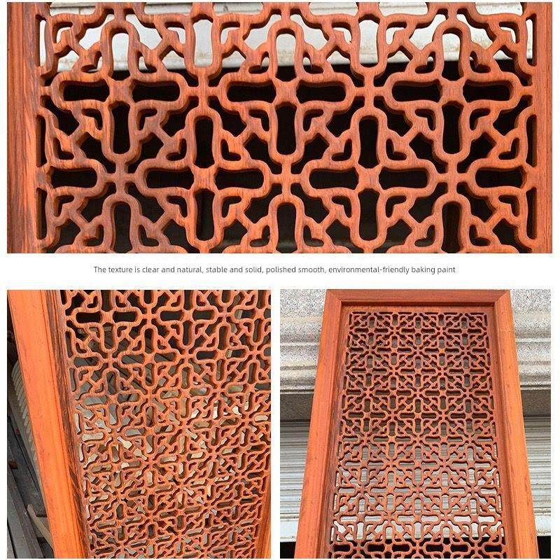 东阳木雕红玫瑰木白胚雕花板屏风隔断镂空入口花板花格客厅背景墙