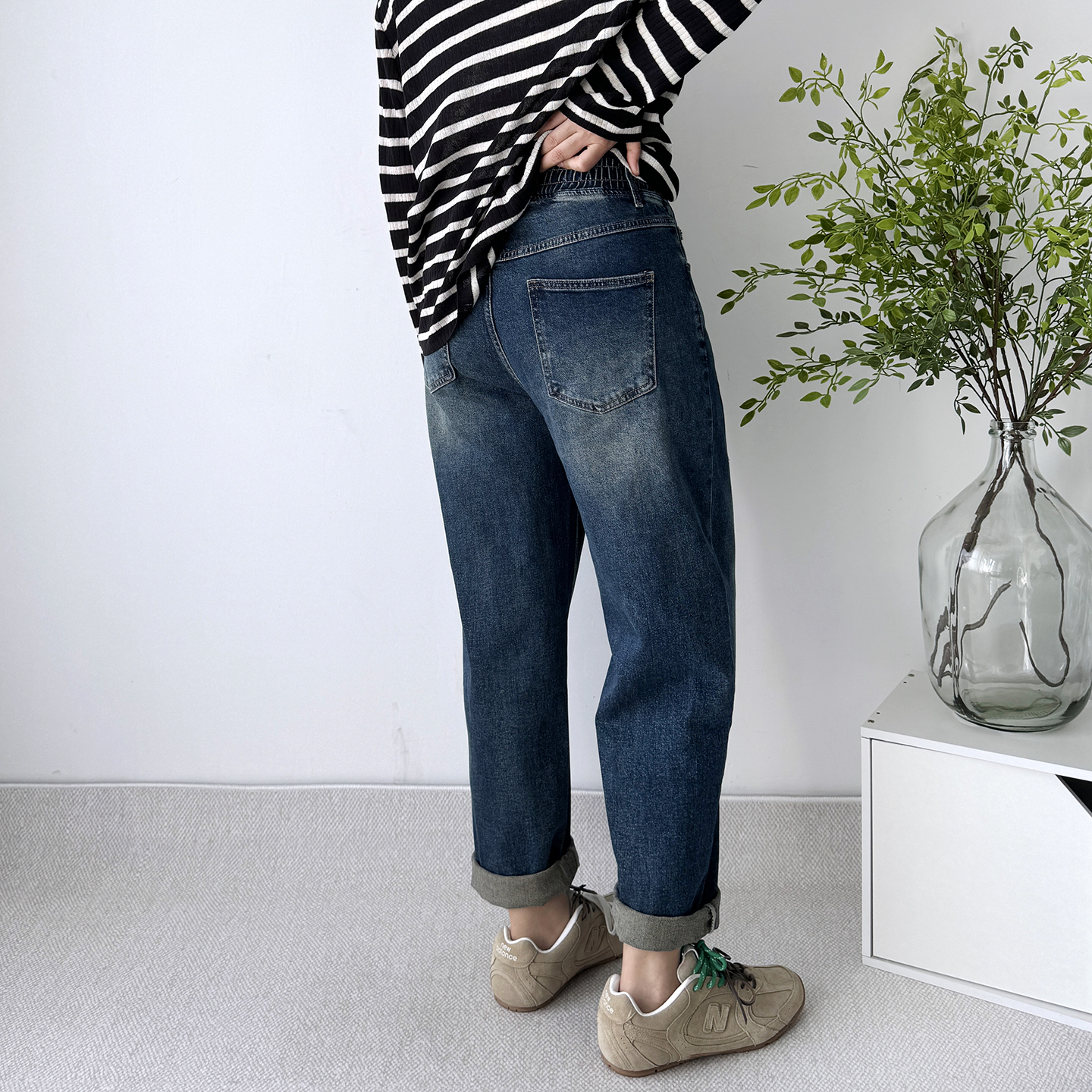 大码女装老爹牛仔裤女2025秋季显瘦女裤宽松哈伦裤胖mm萝卜裤子