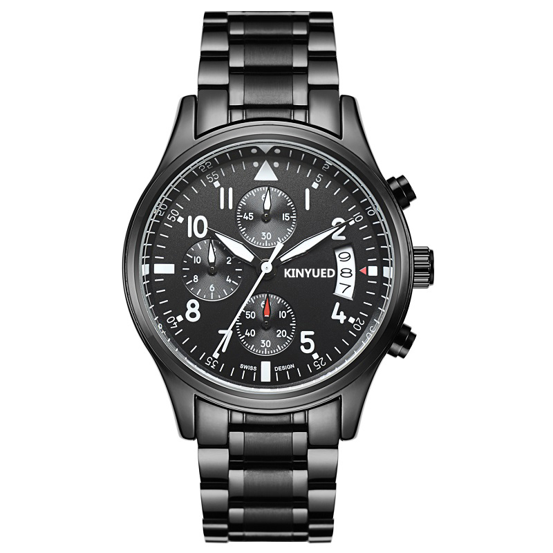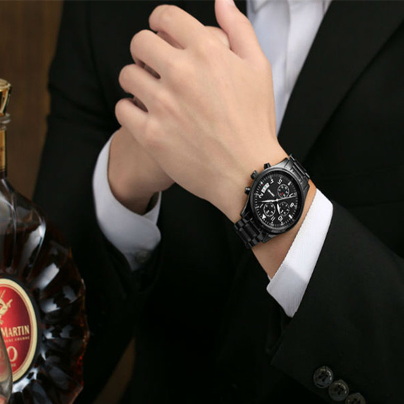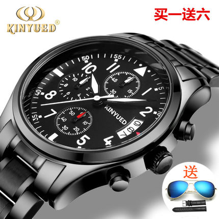 黑色正品防水男士手表精钢带夜光皮带石英学生男表非全自动机械表