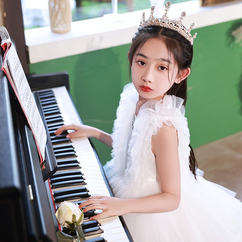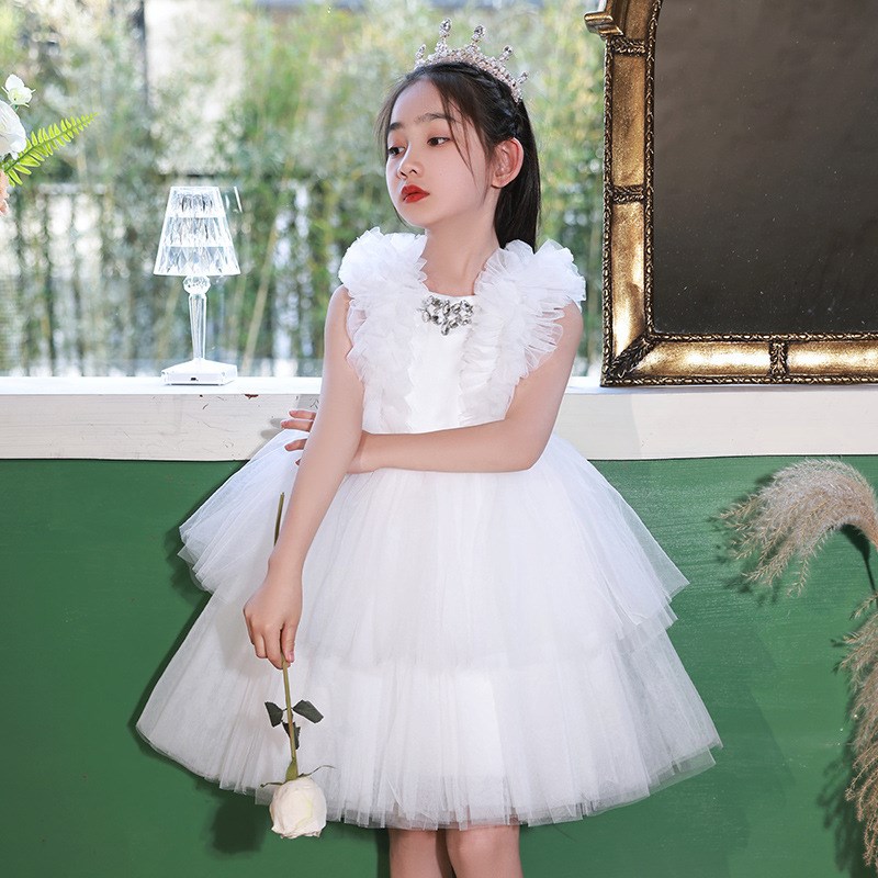 夏季公主裙女童礼服o花童婚礼小女孩生日洋气连衣裙子儿童蓬蓬纱
