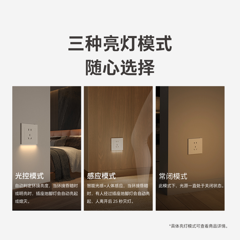 lipro LED智能人体感应地脚灯86型五孔插座踏步灯走廊楼梯小夜灯