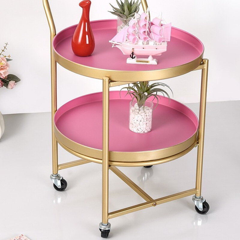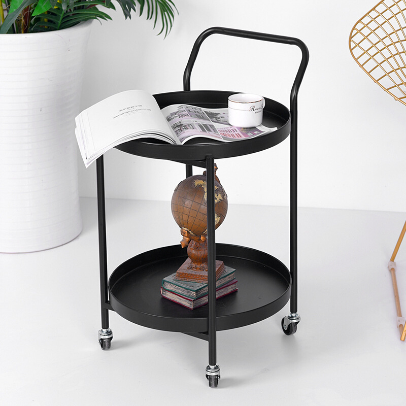 欧式家用边几带轮可移动小茶几轻奢沙发铁艺双层角几创意小圆桌