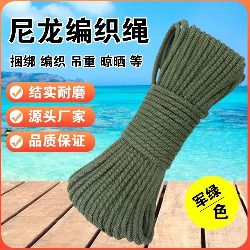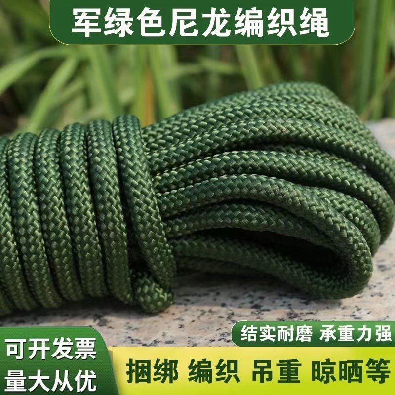 军绿色耐磨结实尼龙绳晾衣晒被绳子捆绑绳子篷布刹车广告绳拉绑绳