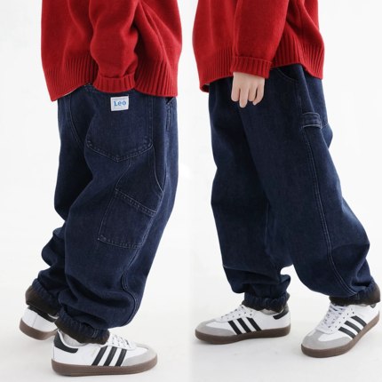 儿童加绒牛仔裤男童保暖长裤冬款加厚奥粒绒软牛仔长裤学生青少年