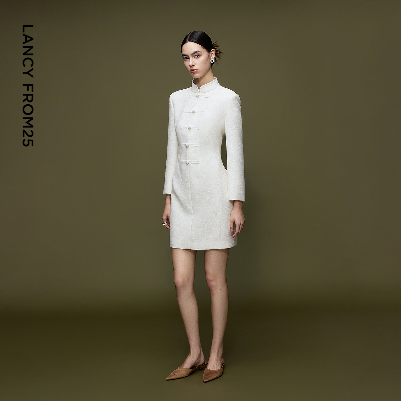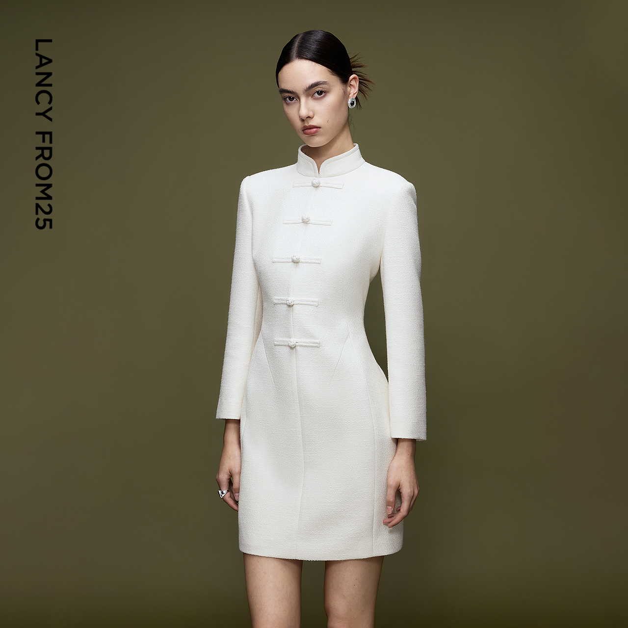 【兰亭叙】朗姿立领收腰盘扣新中式连衣裙优雅通勤风旗袍2025新款