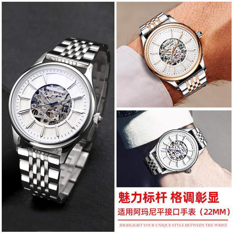 适配阿玛尼男表带AR1945/1648/186D3/AR11121间玫瑰金商务钢带22m