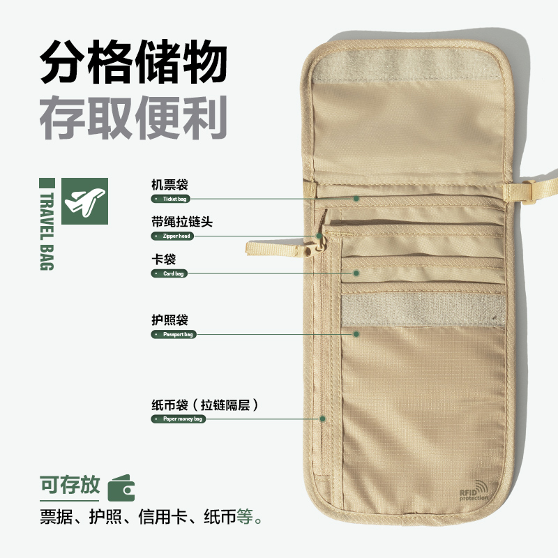 牧高笛证件包多功能防盗刷 机票护照夹零钱手机收纳袋轻薄斜跨包
