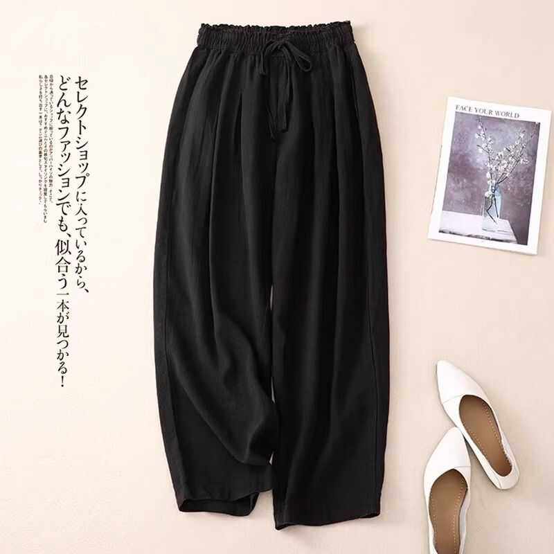 棉麻裤子阔腿裤女2025春款松紧高腰垂感休闲宽松薄款纯棉直筒长裤