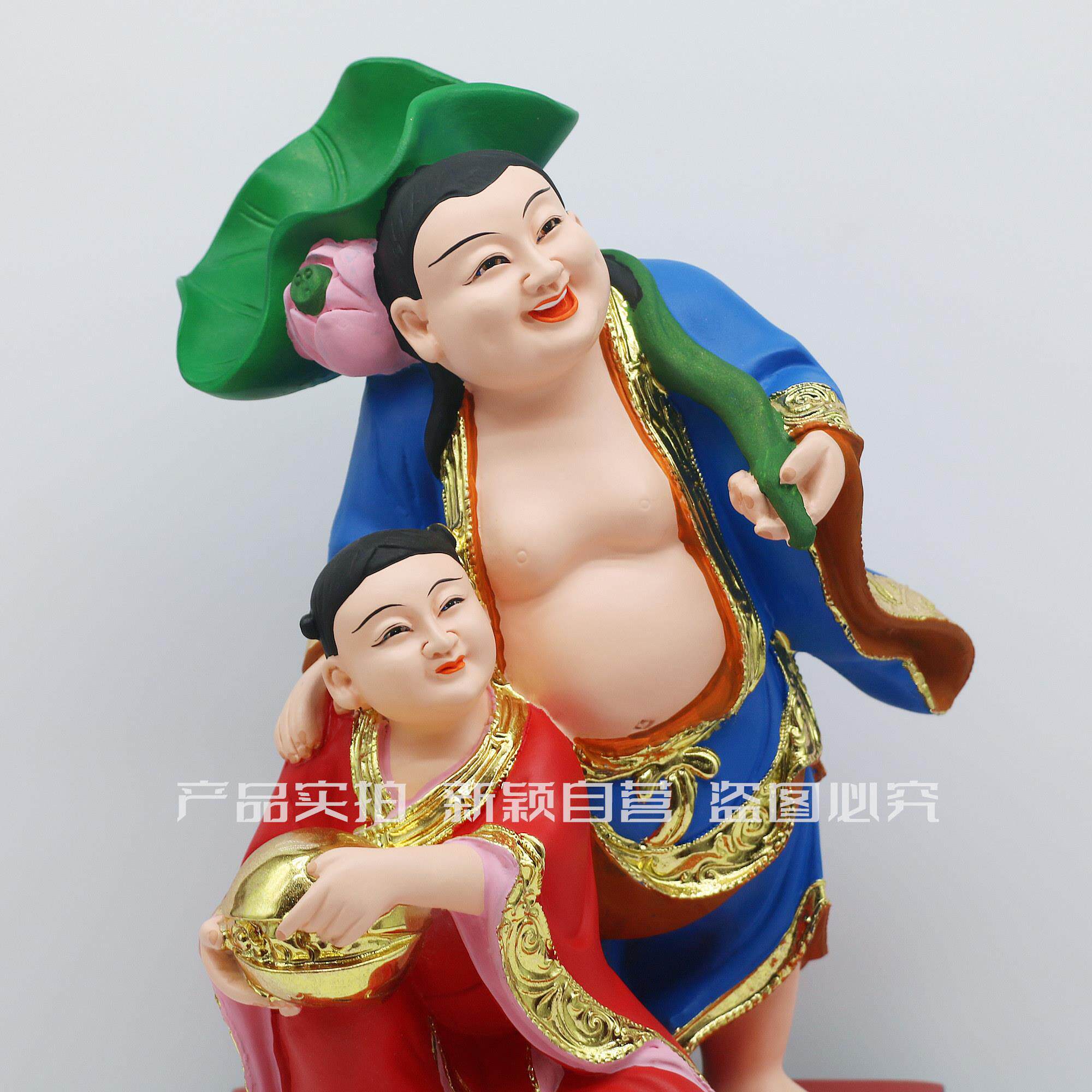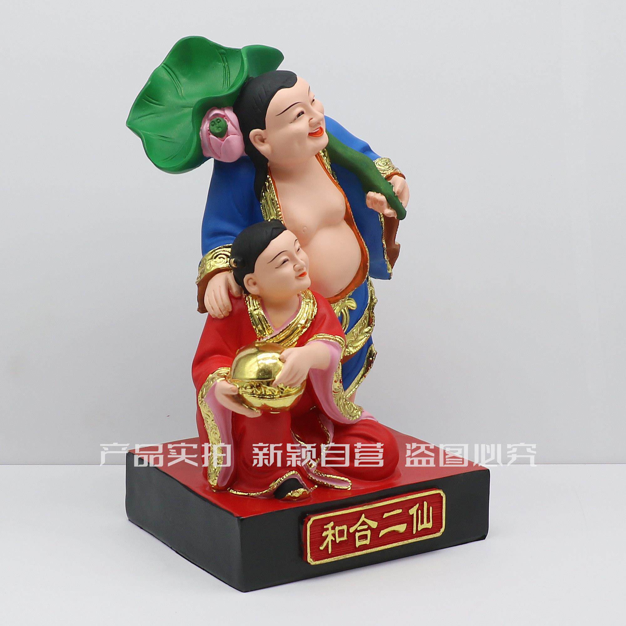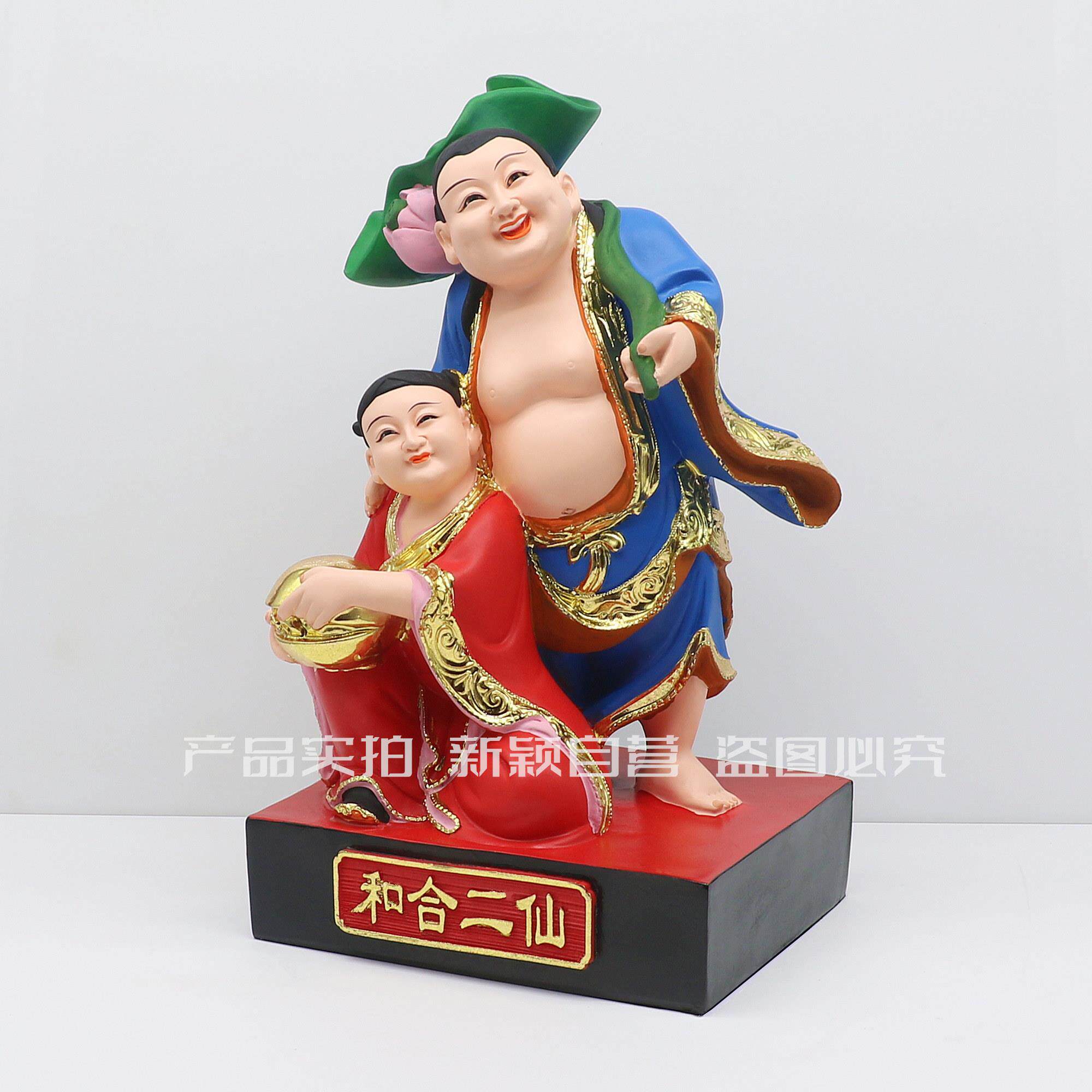 包邮树脂像 和合二圣福和二神家庭和睦家用工艺品桌面摆件12英寸