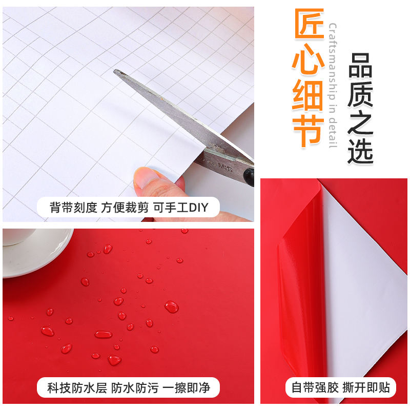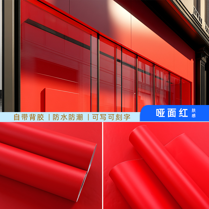 红色贴纸防水广告纸即时贴墙纸不干胶中国大红背景玻璃膜柜子装饰