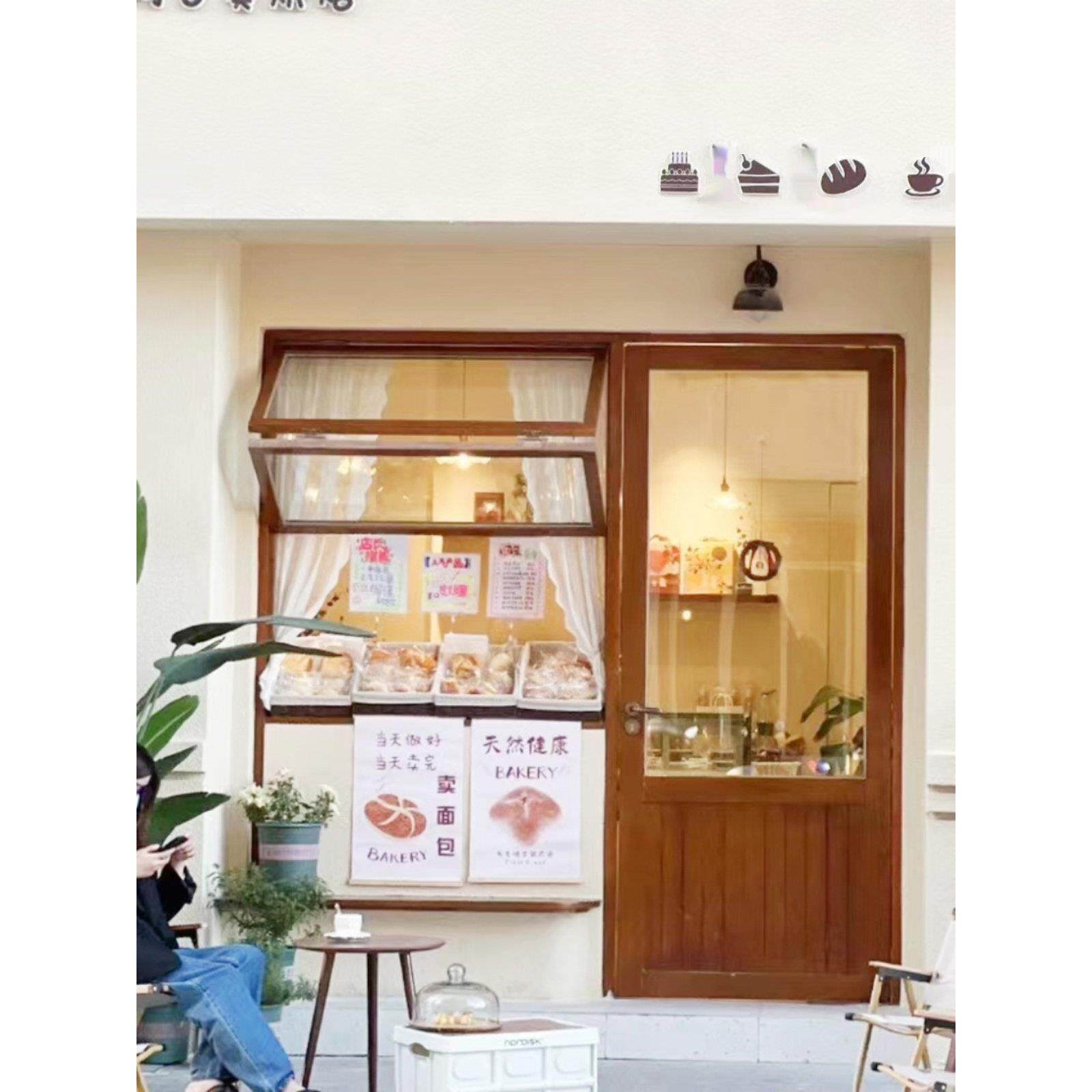 花店实木门窗定做樟子松原木蛋糕甜品门头框架结构简约现代门联窗