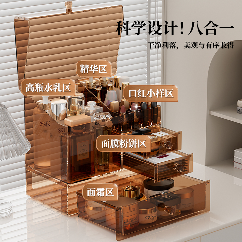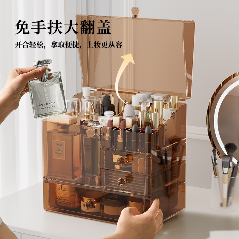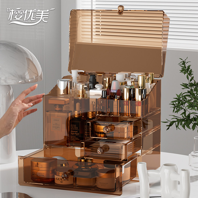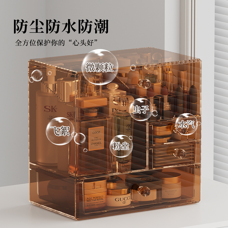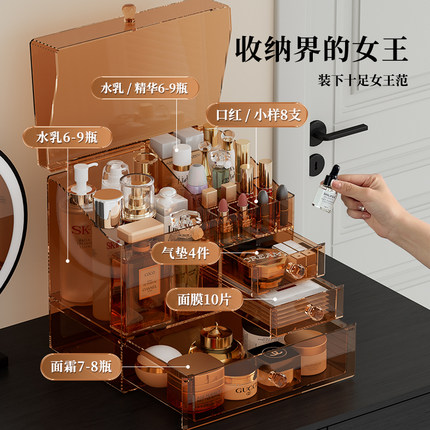 化妆品收纳盒高级防尘箱大容量抽屉梳妆台亚克力宿舍化妆品置物架