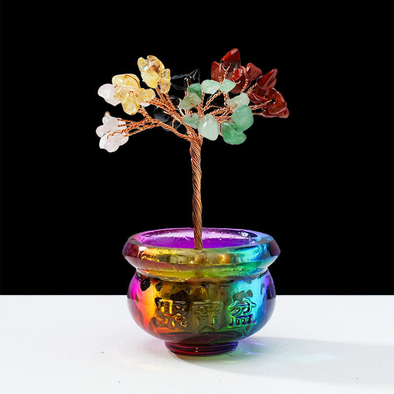 碎石发财树天然水晶摆件