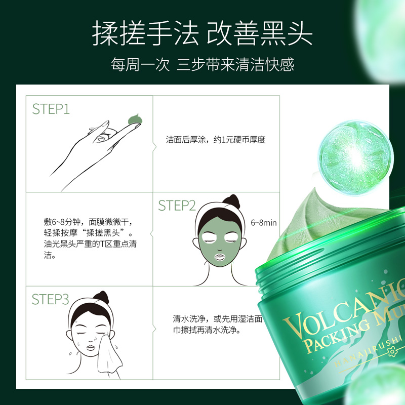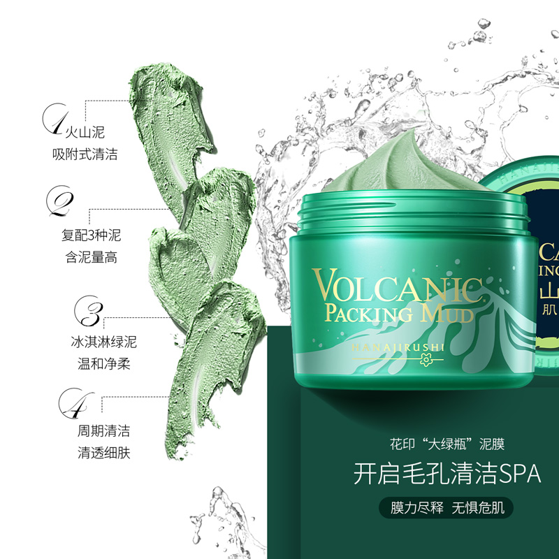 花印火山泥清洁面膜195g补水保湿黑头闭口涂抹式日本原装进口正品