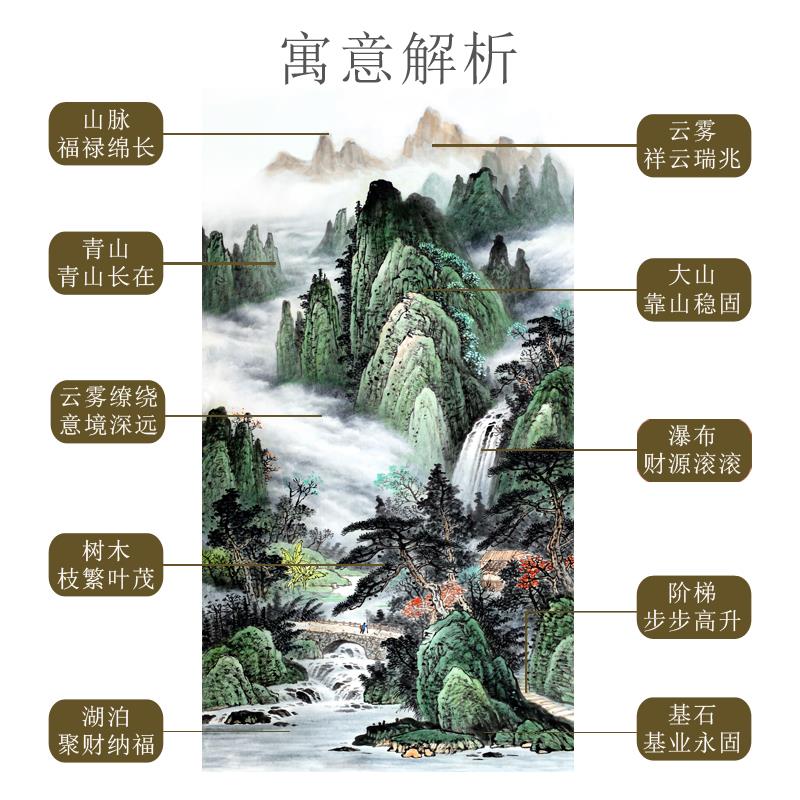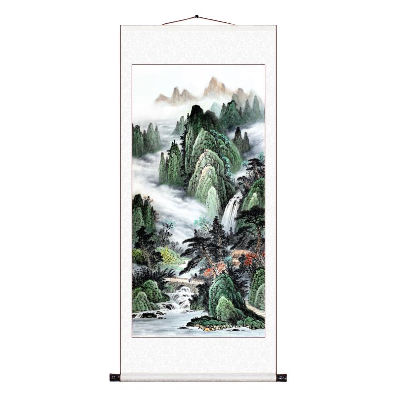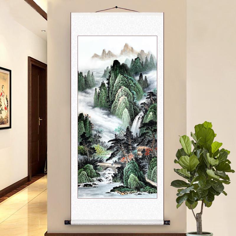 山水画玄关装饰画竖幅卷轴挂画客厅国画办公室墙壁走廊过道风景画