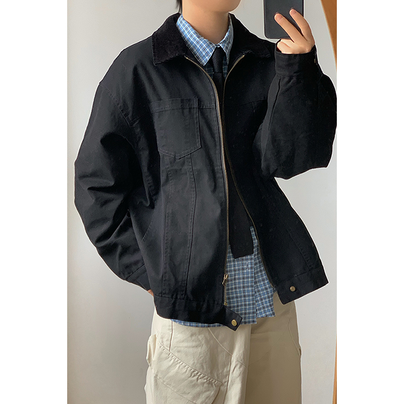 林弯弯拼接翻领飞行服外套男女春秋水洗春款宽松卡哈特工装夹克秋