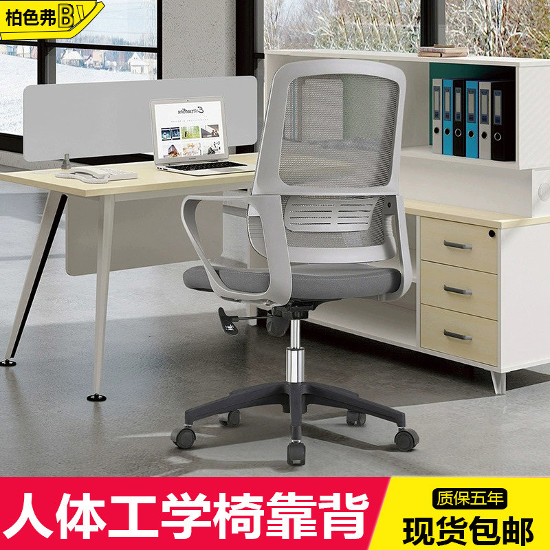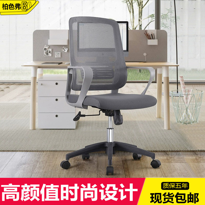 办公电脑椅职员椅灰色舒适升降转椅弓形椅网布久坐会议室椅子座椅
