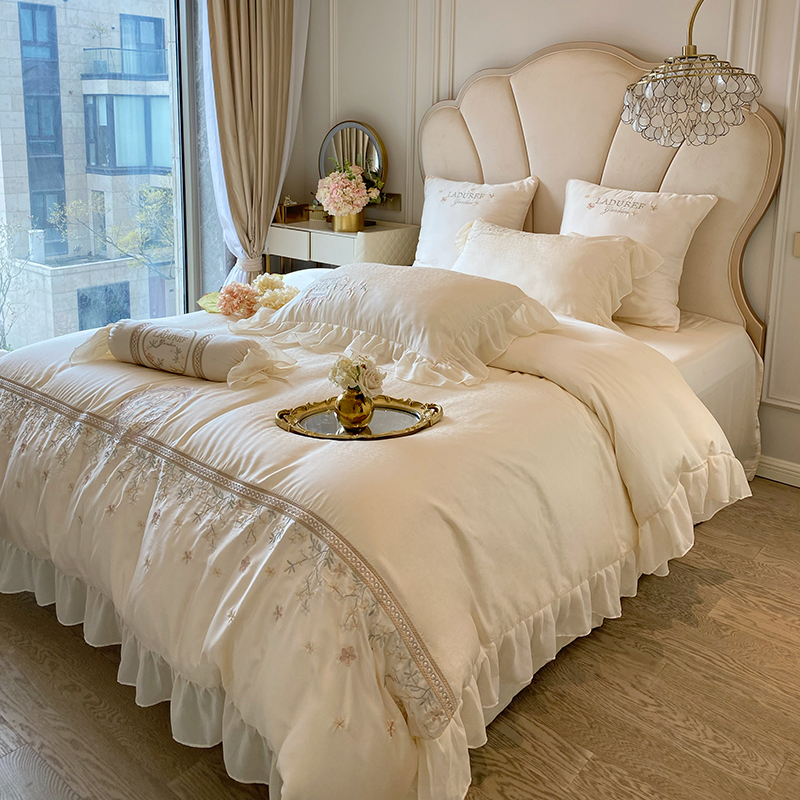 夏季公主风100支双面天丝四件套被套凉感丝滑床裙床单床上用品
