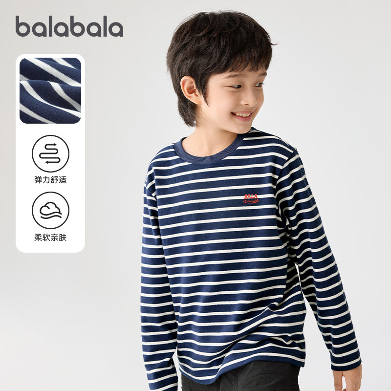 巴拉巴拉男童长袖t恤儿童纯棉打底衫大童条纹衣2025秋季新款童装