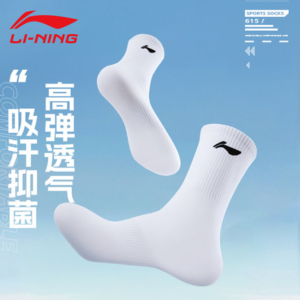 李宁袜子正品男款青少年2025新款男士专业跑步运动袜子中筒羽毛球