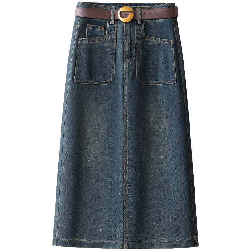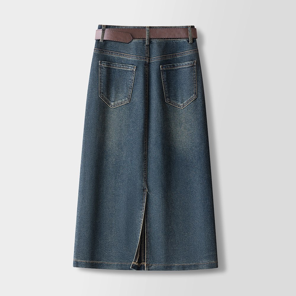开叉牛仔直筒裙半身裙女2025秋季新款高腰显瘦一步裙百搭包臀裙