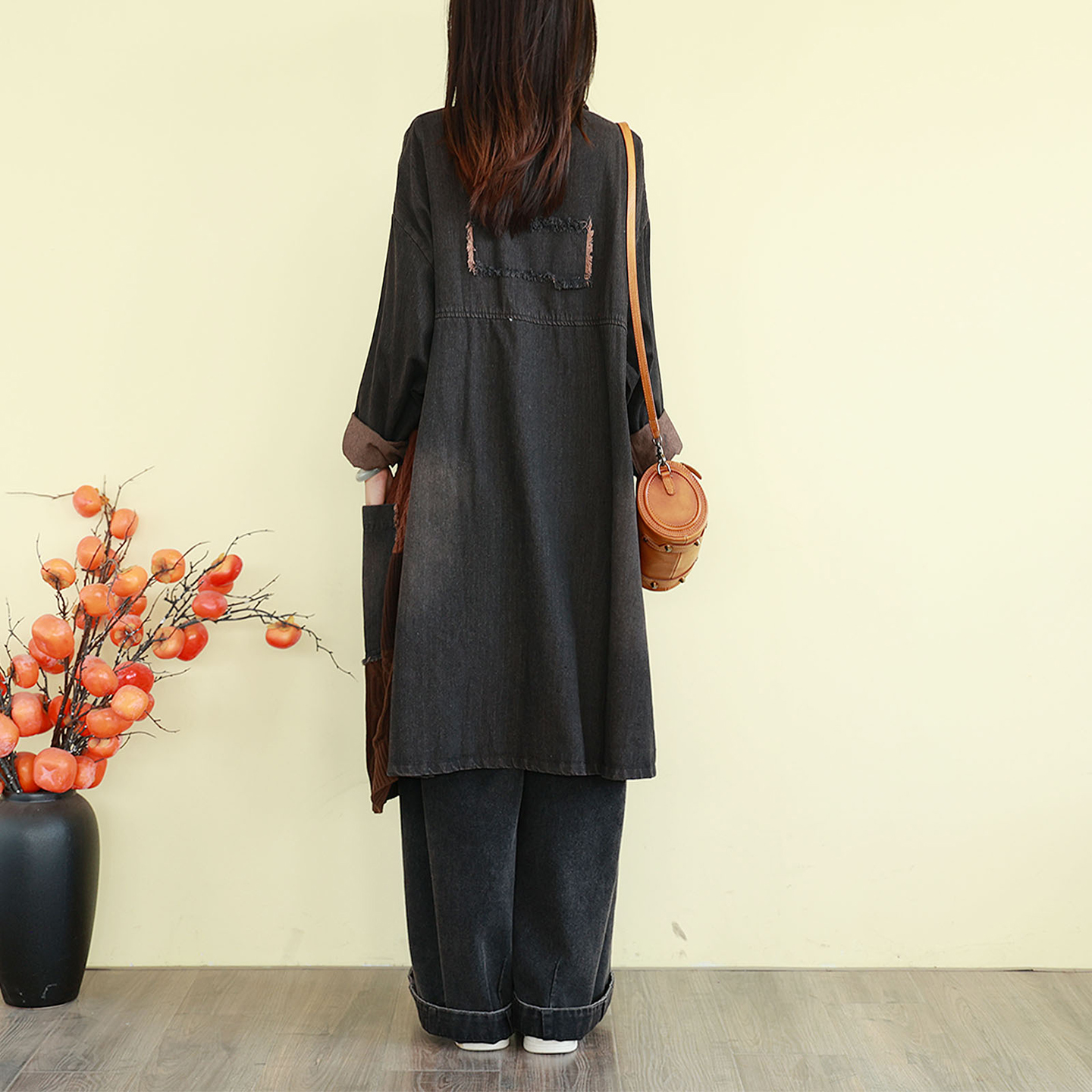 复古针织拼接牛仔风衣外套女秋季中长款气质外搭开衫宽松森系棉料