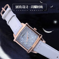 玛丽莎新款精钢方型水钻表多色可选满钻彩色女表时装表休闲手表
