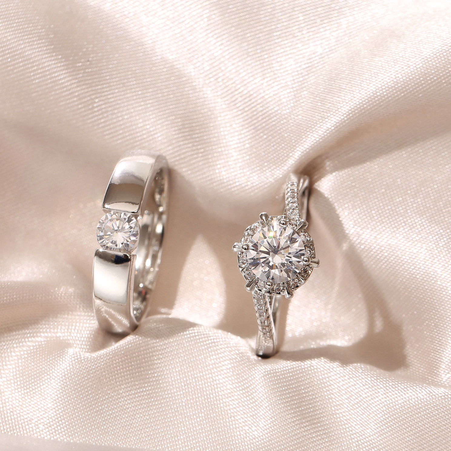 仿真大气奢华结婚扭臂钻戒一对