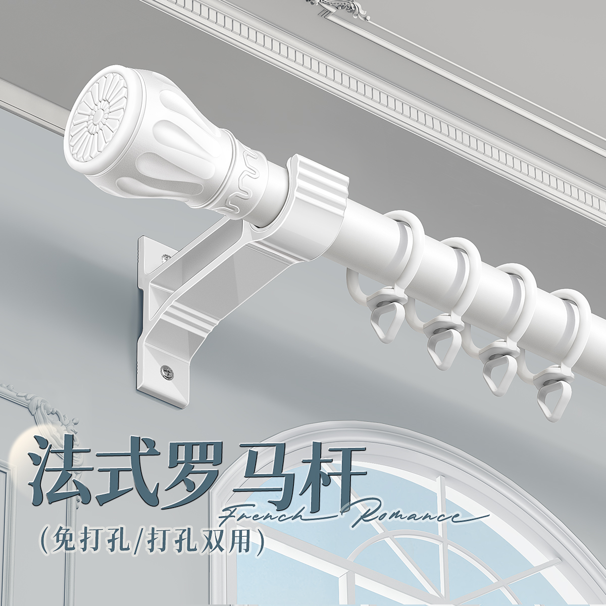 法式轻奢罗马杆打孔免打孔双用