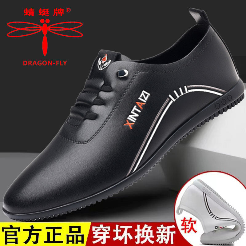 蜻蜓品牌皮鞋男真皮夏季透气休闲鞋2024新款软底中老年爸爸鞋轻便