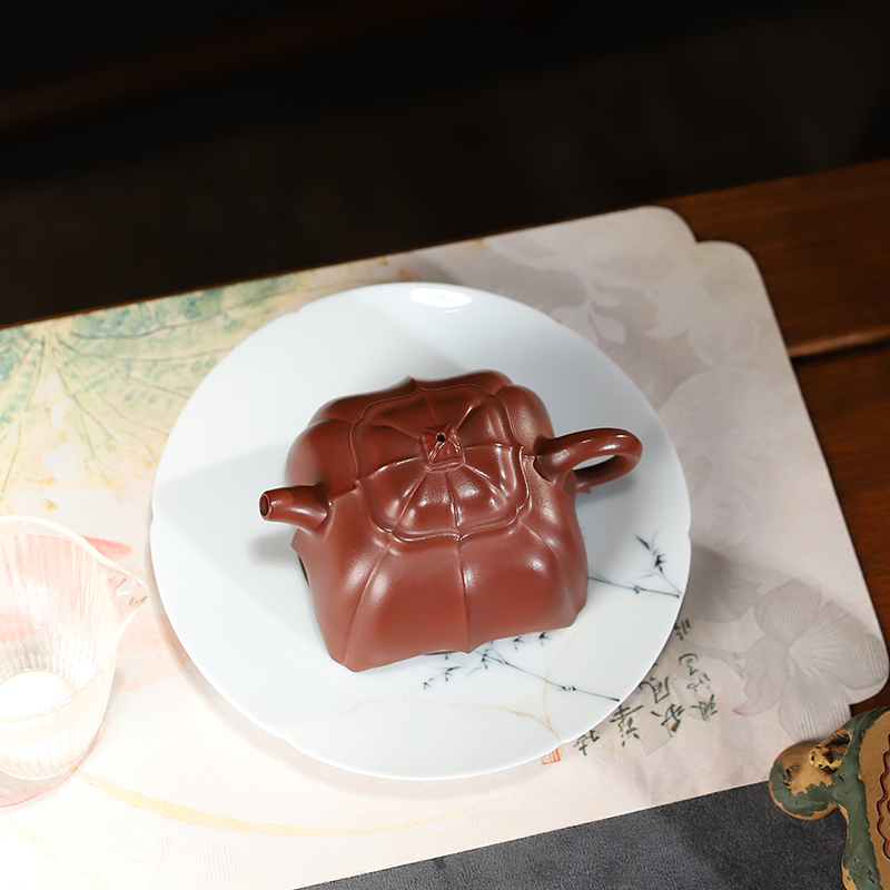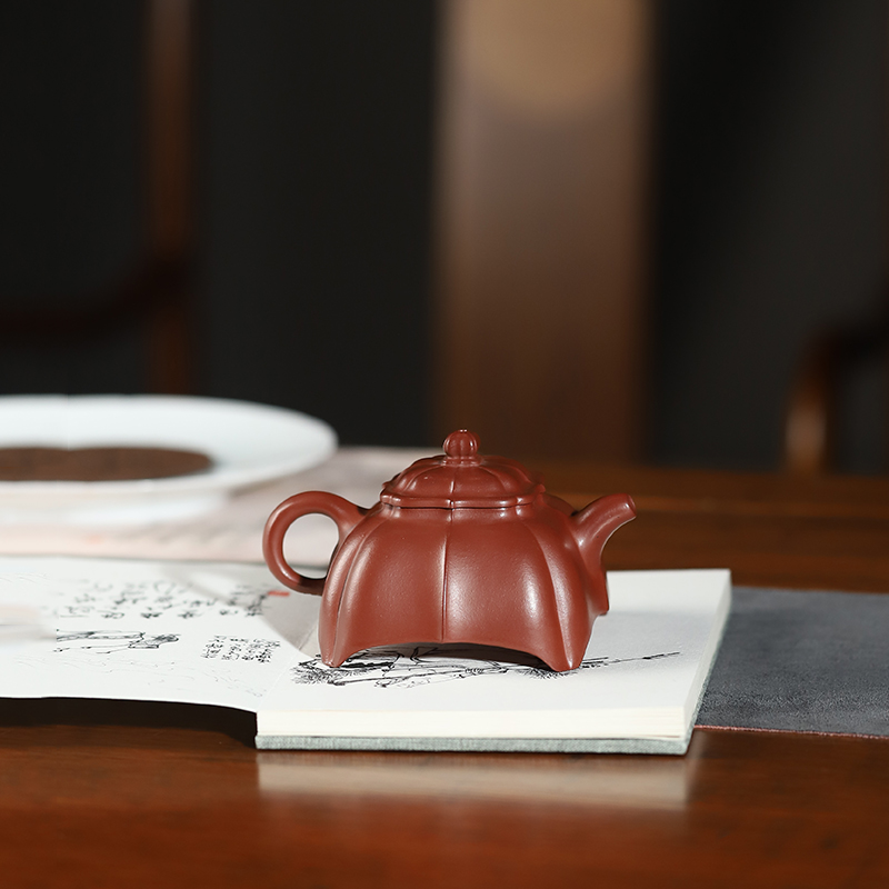 宜兴紫砂壶原矿朱泥纯手工筋纹玉菱180ml中式功夫泡茶壶茶具礼品