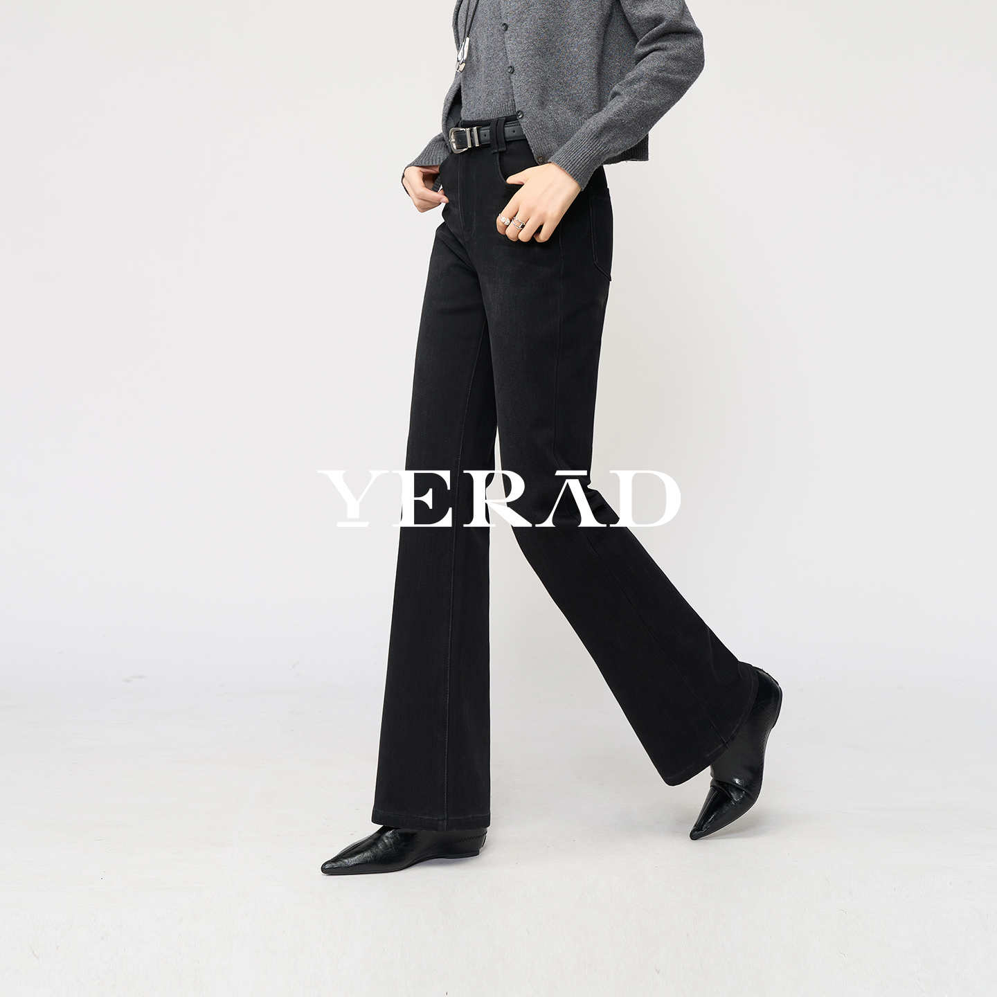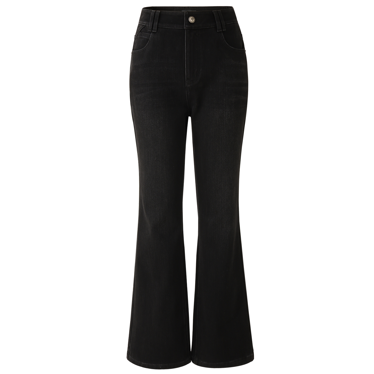 网力弹娅丽达加绒微喇牛仔裤女2025冬新款弹力修身显瘦黑色喇叭裤