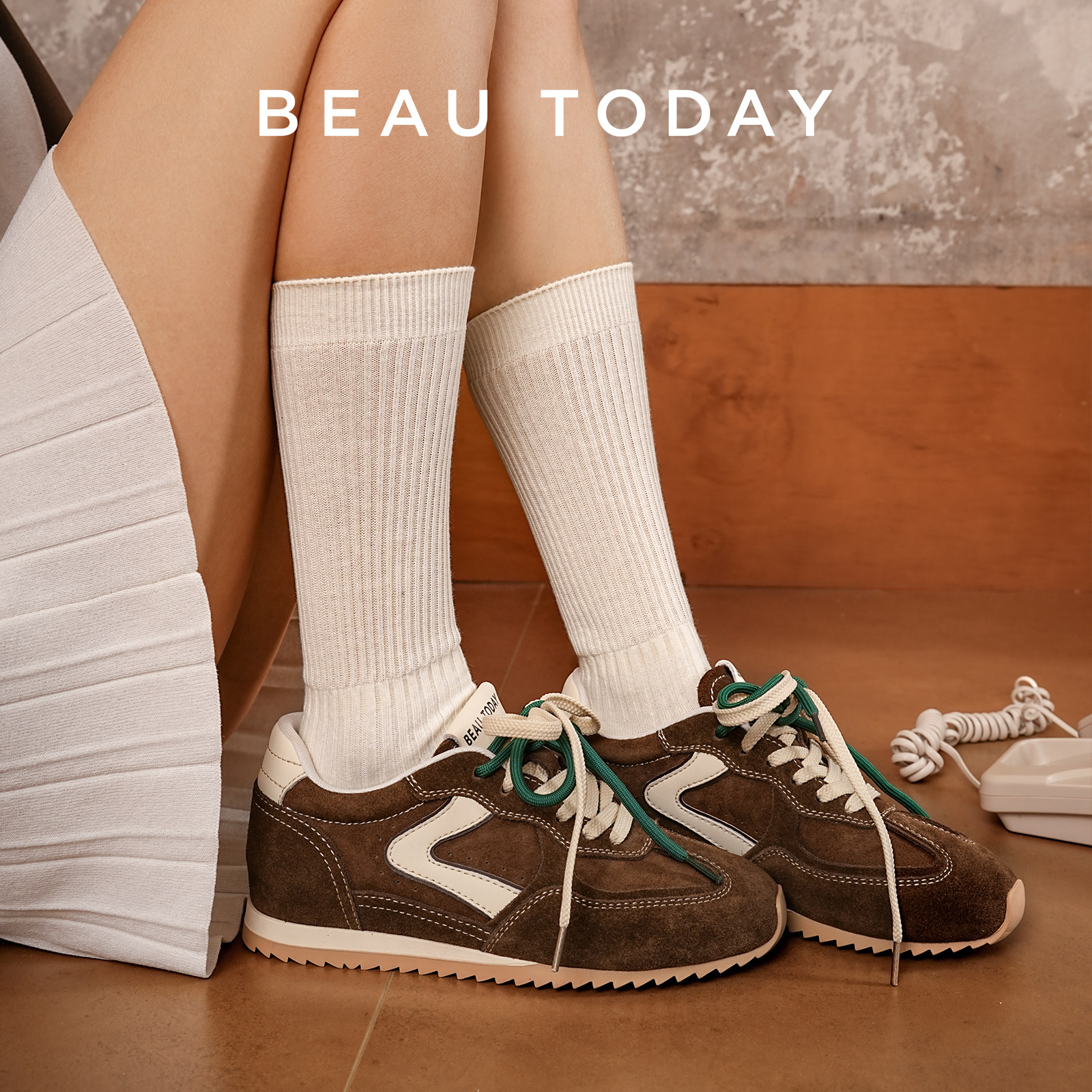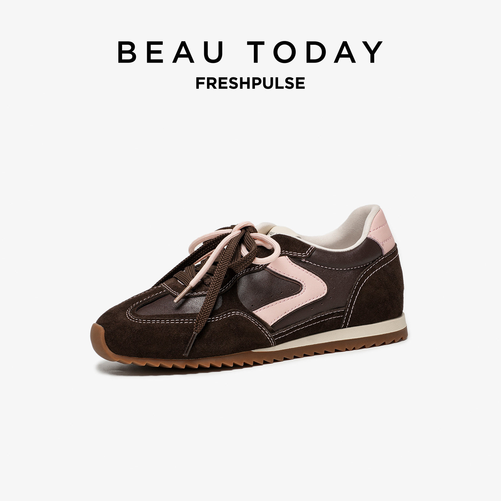 BeauToday德训鞋女款2026春内增高软底运动休闲鞋真皮板鞋阿甘鞋