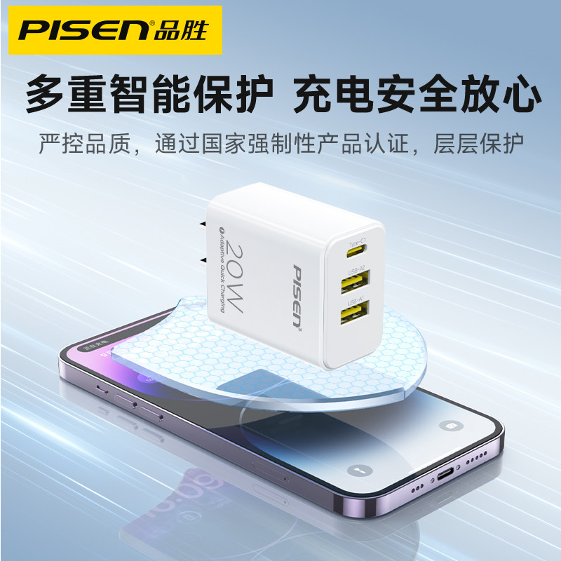 品胜充电器20W多口usb快充插头多功能三口充电头闪充适用苹果15华为mate小米10安卓手机平板typec多孔冲电头