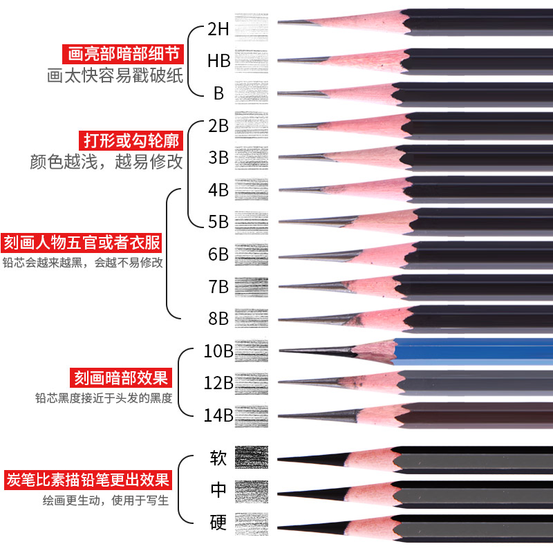 马利素描铅笔2b4b6b12b14b初学者速写全套2比美术用品马力牌hb美术生专用工具绘画炭笔碳笔软碳中硬笔画画