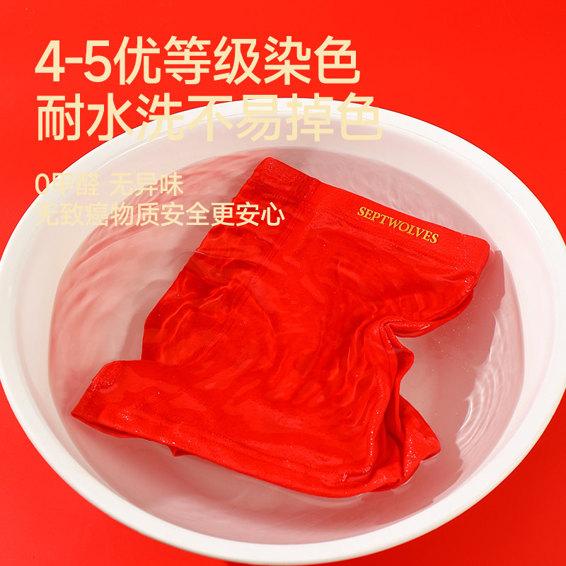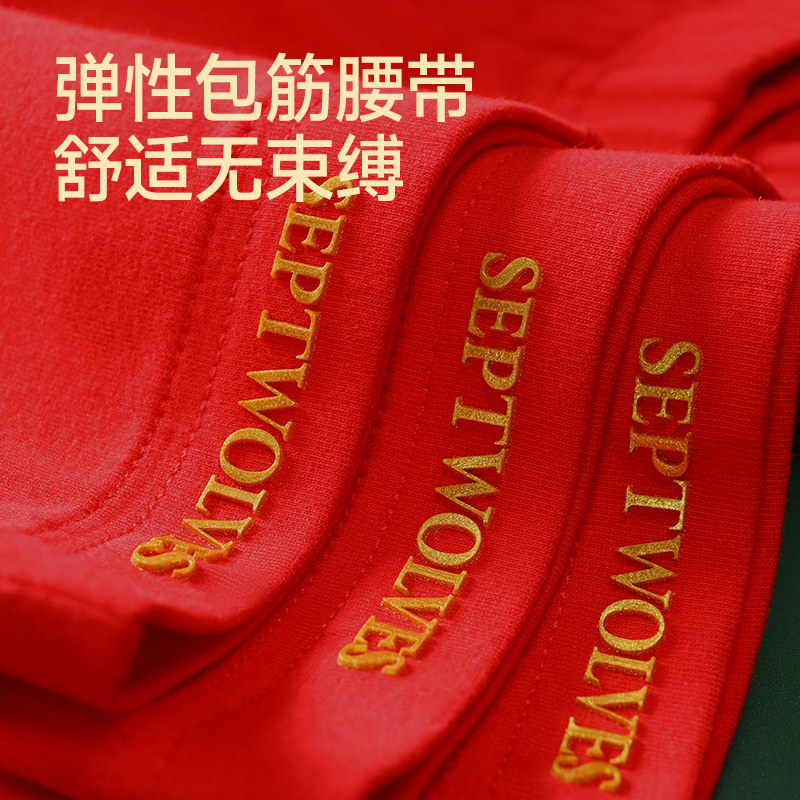 七匹狼马年本命年男士内裤袜子纯棉四角短裤礼物红色全棉平角裤头