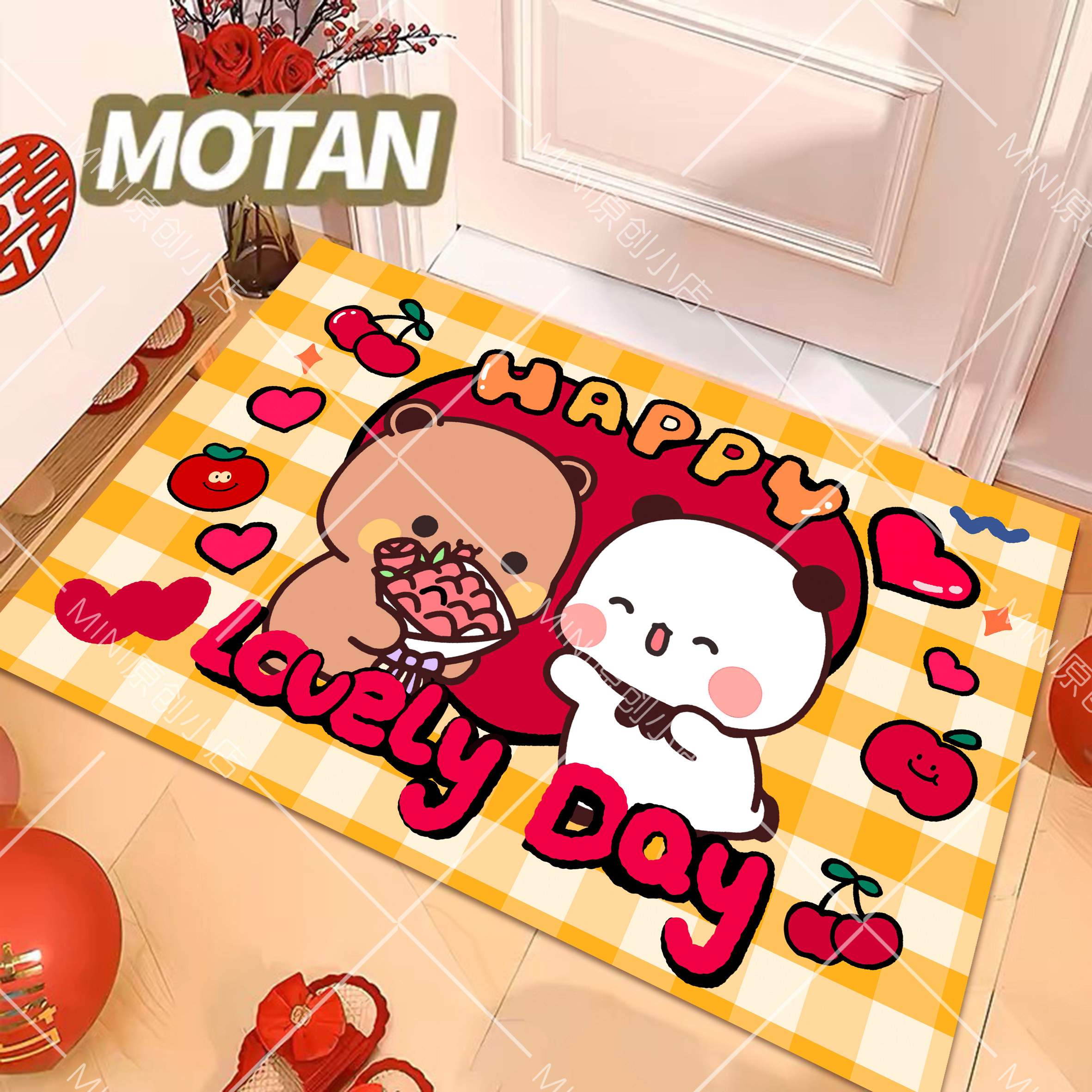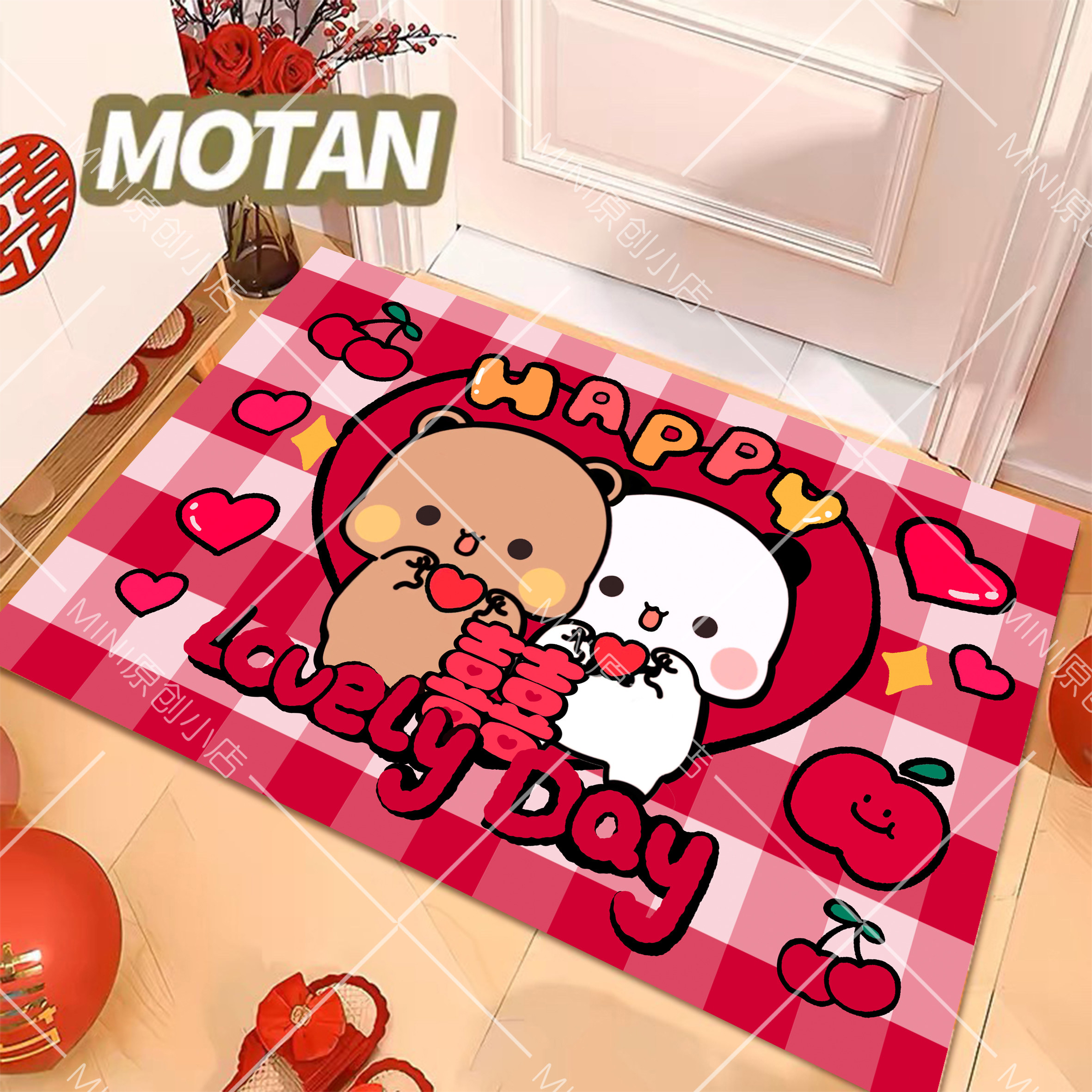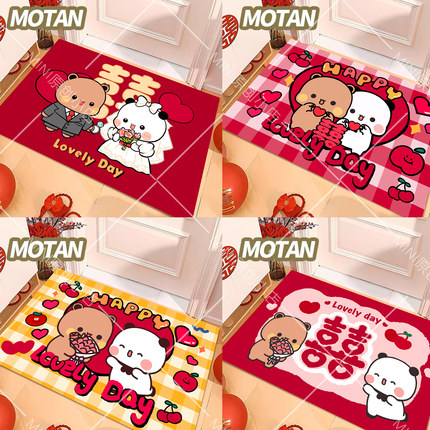 卡通一二布布婚礼结婚入户卧室地垫 婚礼硅藻泥丝圈地毯 喜庆垫子
