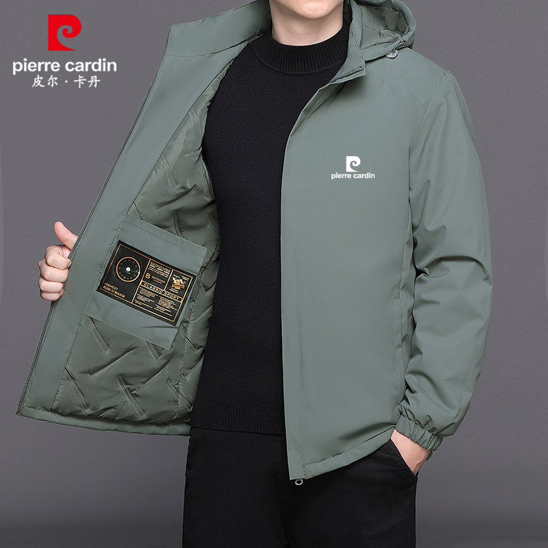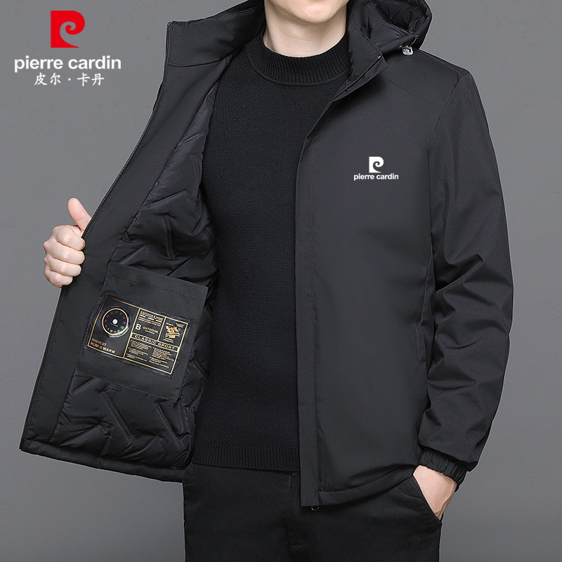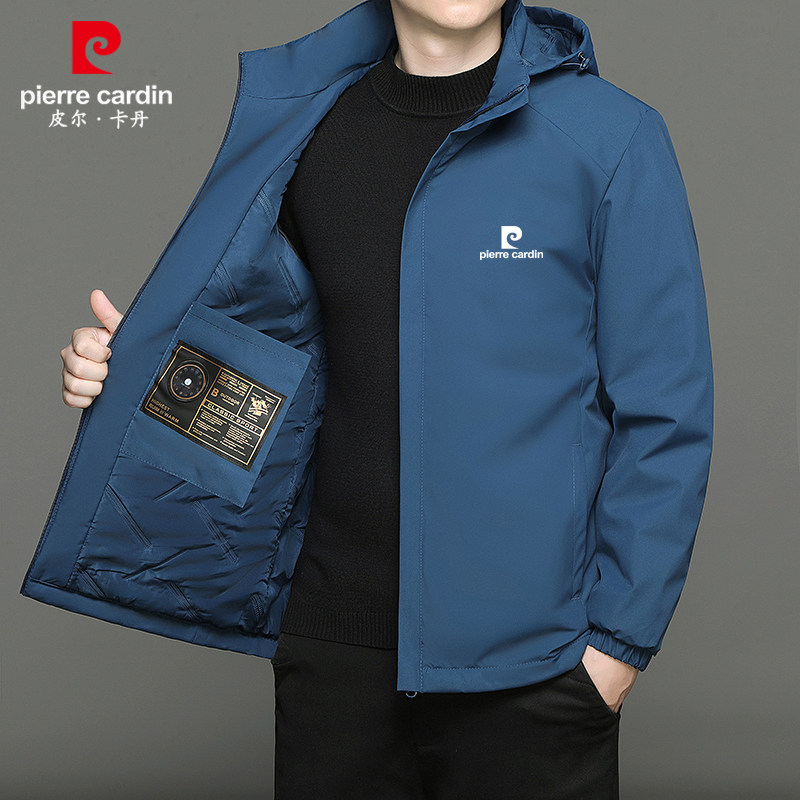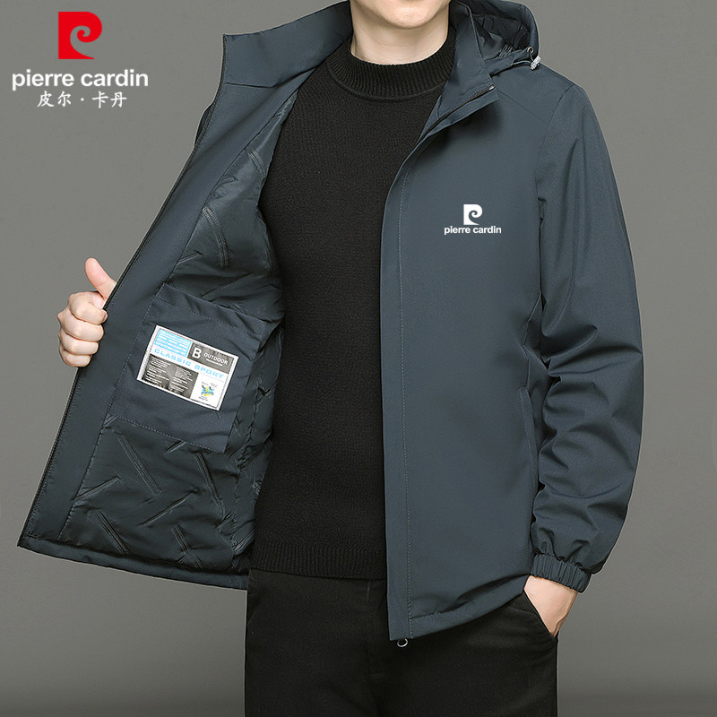 皮尔卡丹正品冬季连帽可拆防风防水夹克男士休闲宽松加棉保暖外套