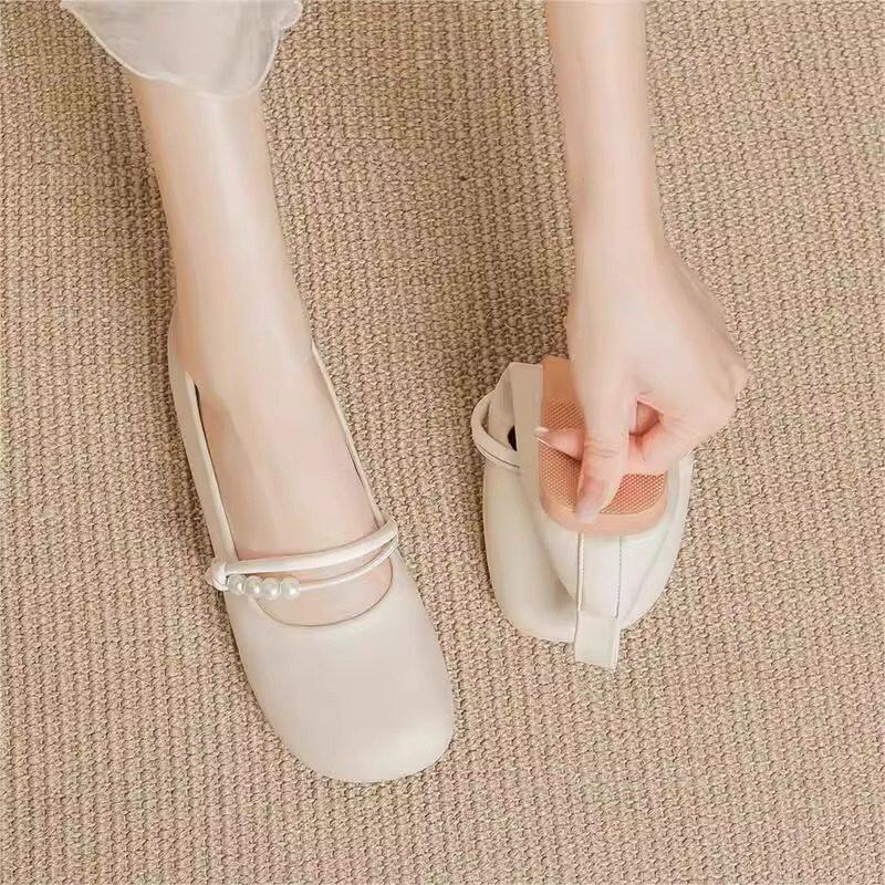 品牌真皮清仓平底女单鞋2026年新款春秋珍珠平底软底防滑舒适女鞋