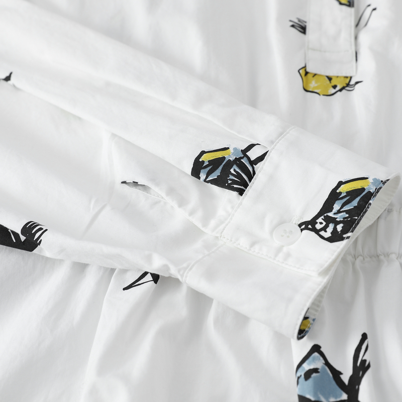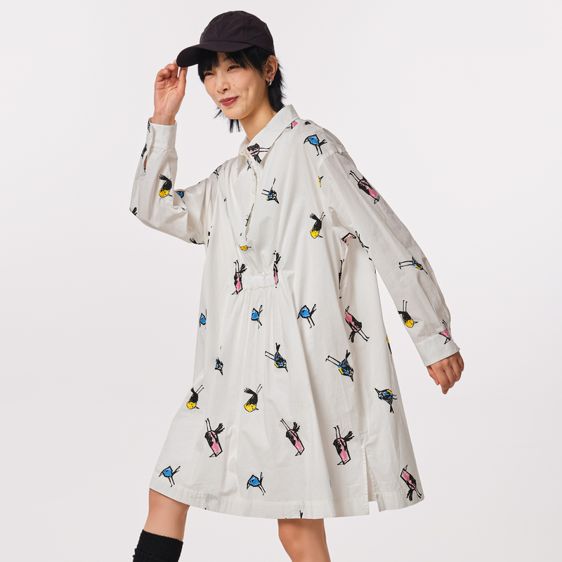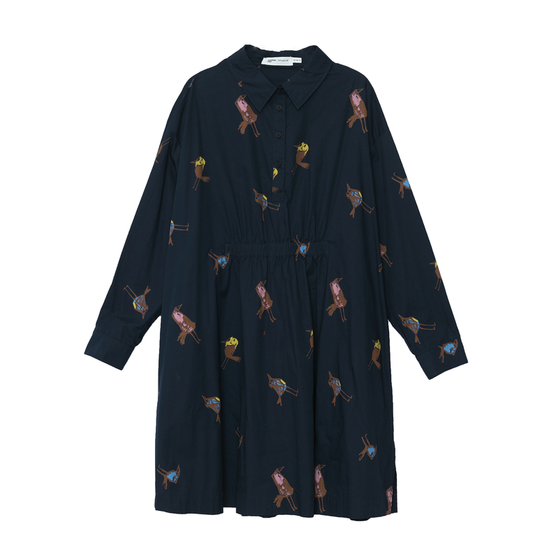 MOVEUP幻走2023秋季新款.FUN系列衬衫领印花口袋设计师纯棉连衣裙