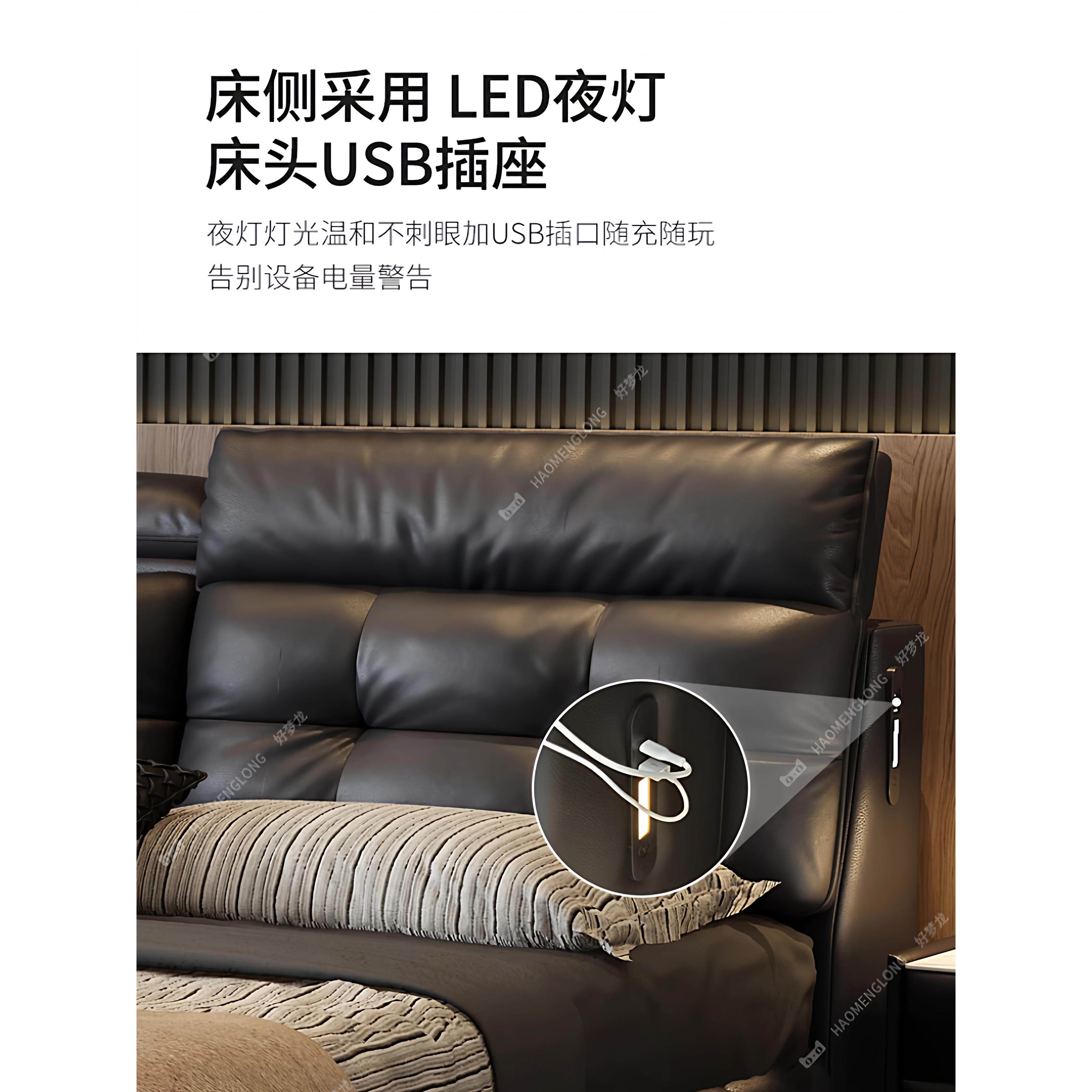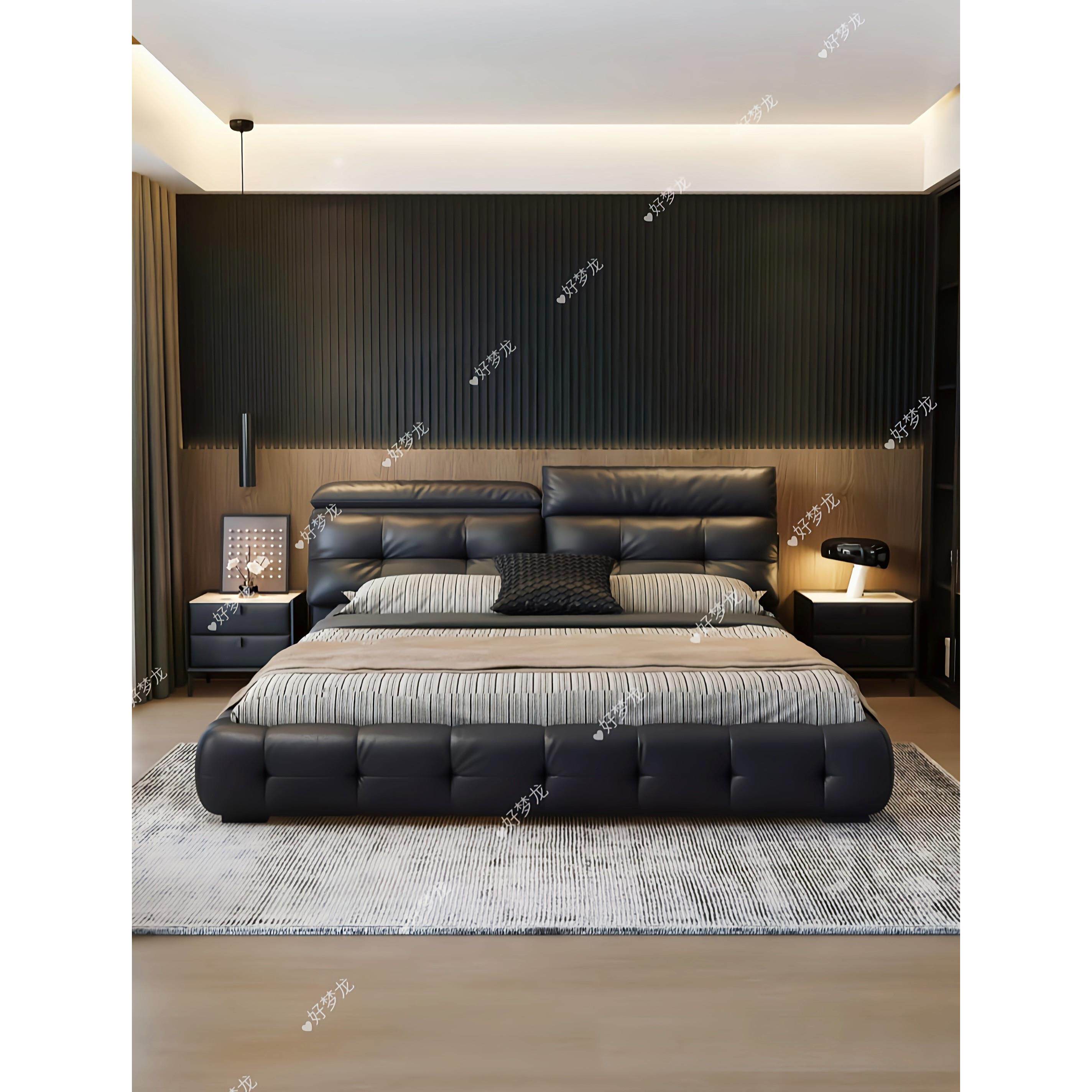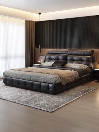 现代简约新款劳伦斯皮艺床主卧软包床高端大气双人床卧室齐边婚床