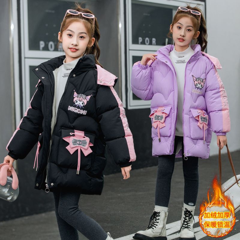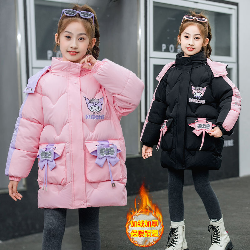 女童冬装棉袄外套儿童爆款洋气韩版中长款加绒加厚冬季时髦款棉服