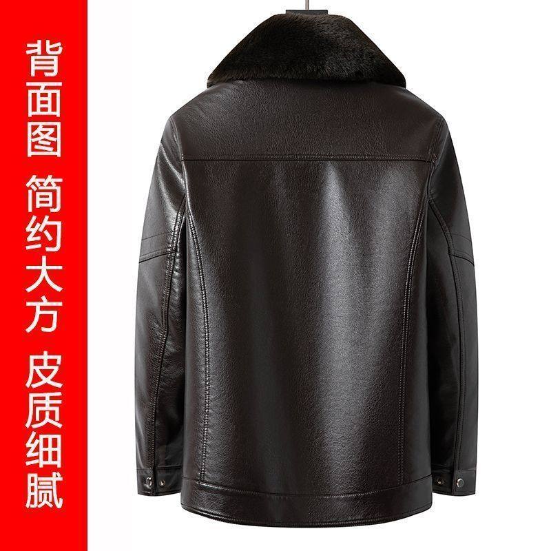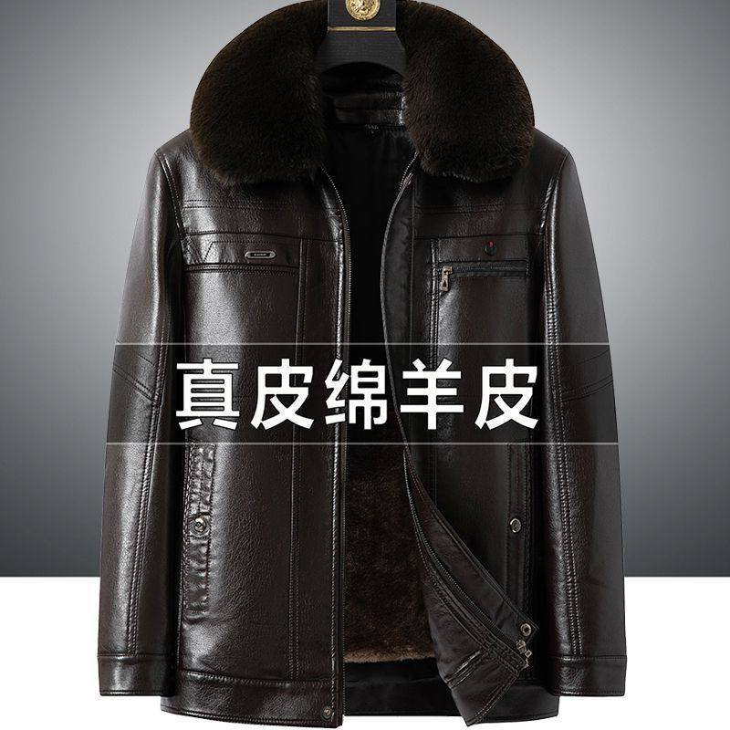 海宁中老年皮衣加厚大码宽松皮毛一体爸爸加绒男士冬季皮夹克外套