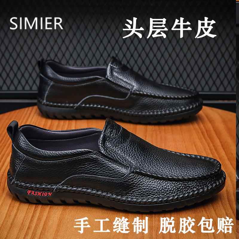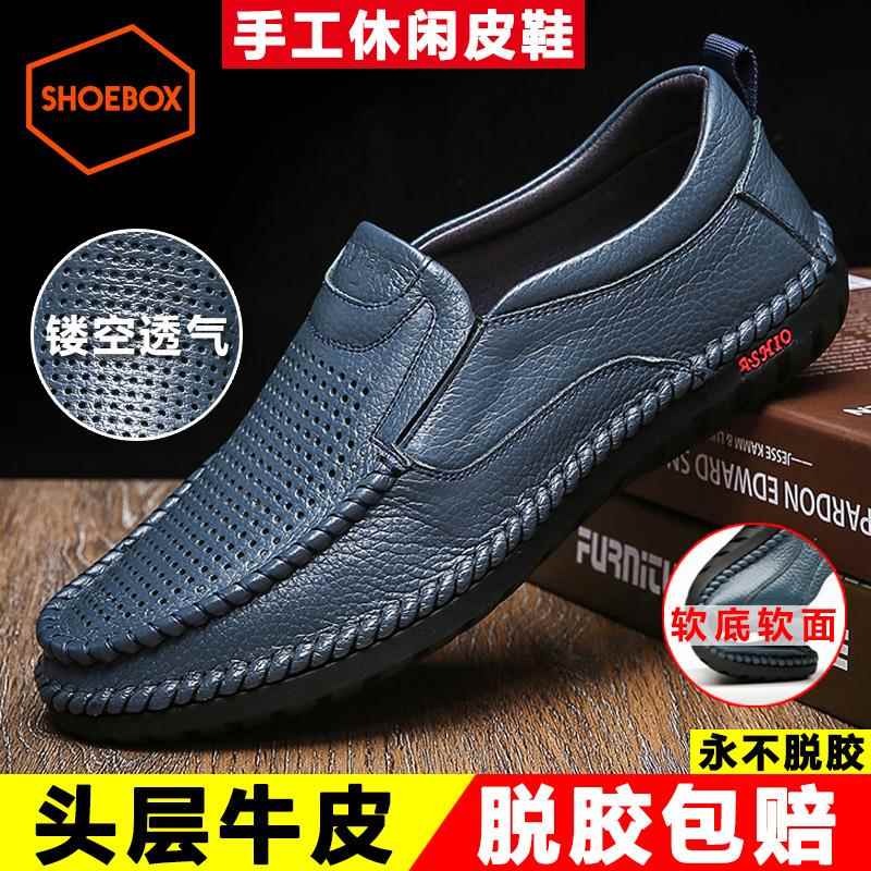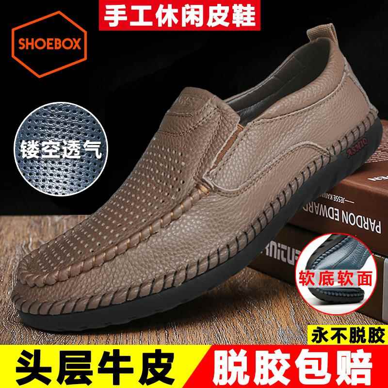 新款皮鞋男福真牛筋底镂空洞洞真皮休闲大码乐男皮鞋子中老年套脚