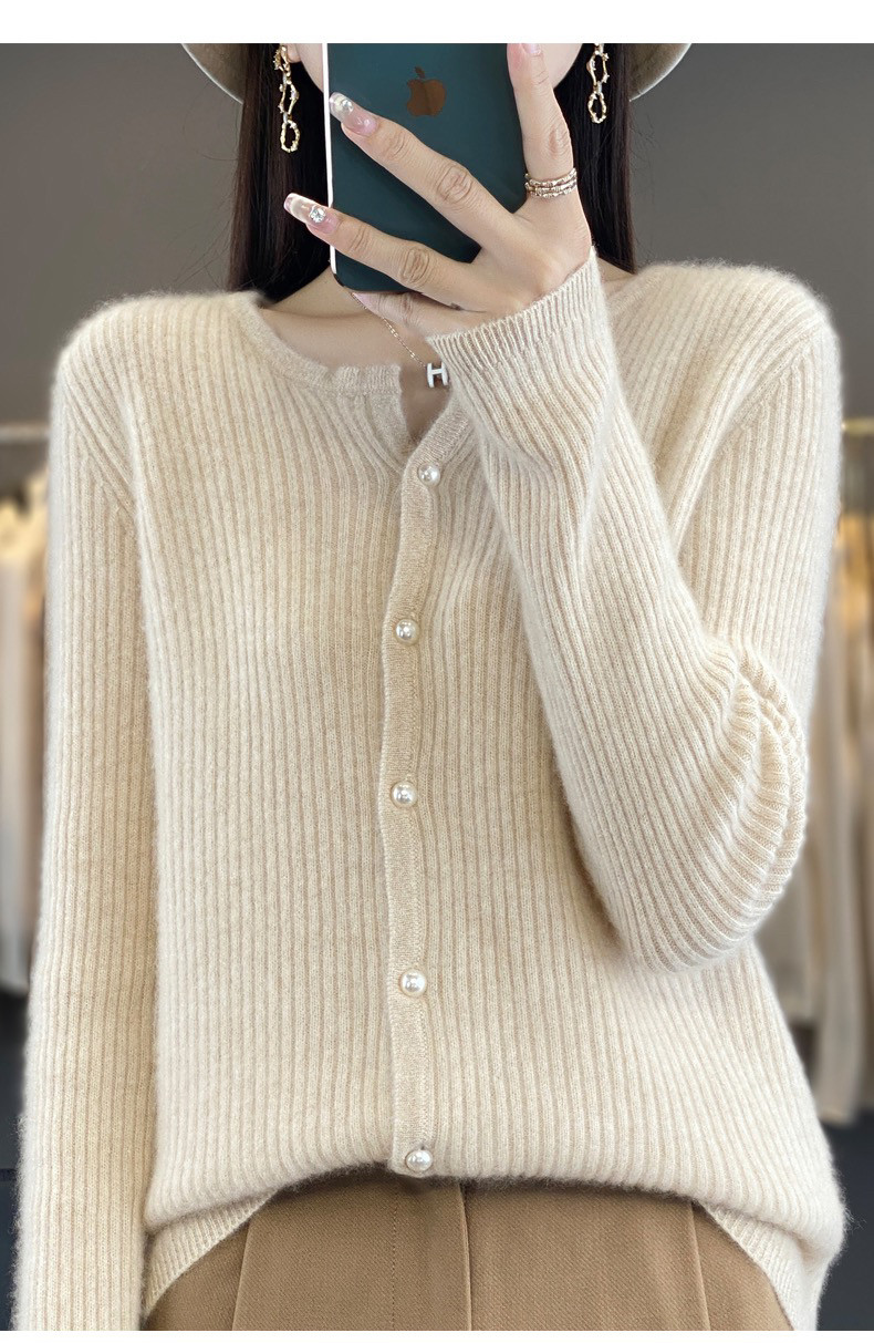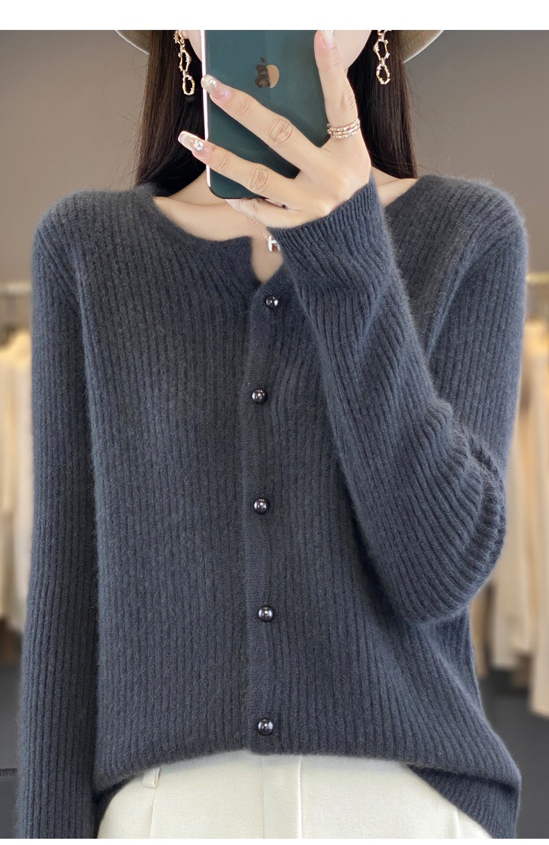 纯羊毛外套女春秋薄款外搭上衣小个子短款长袖宽松针织开衫