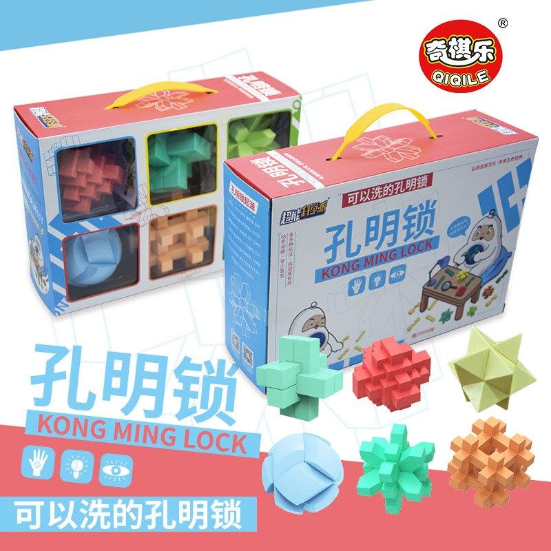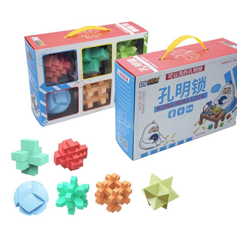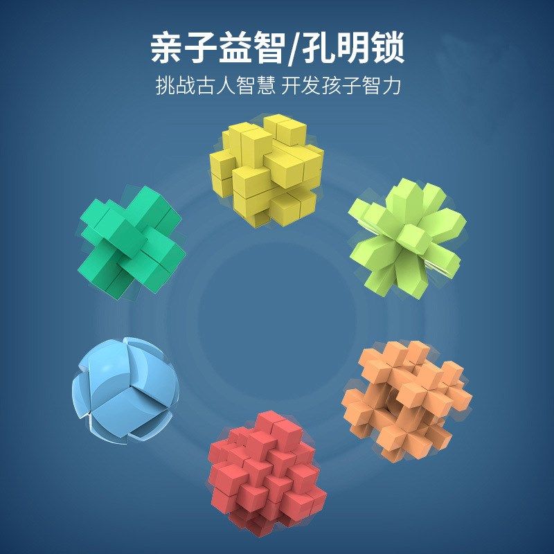 益智彩色鲁班锁孔明锁全套小学生解环解锁榫卯玩具解密智力游戏