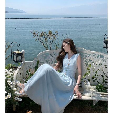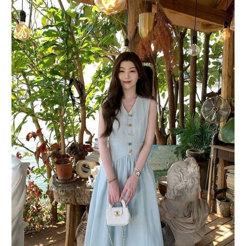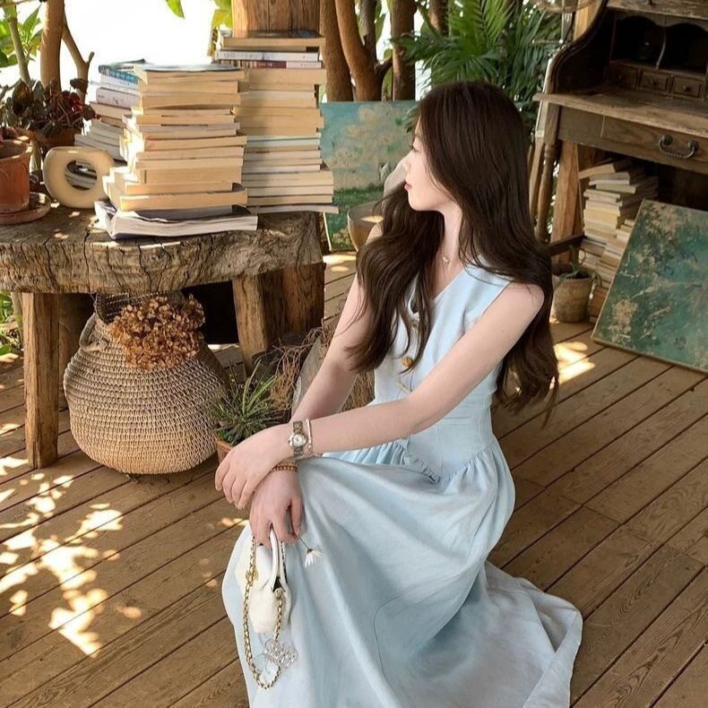 法式新款气质小香风夏季收腰显瘦长裙子显瘦百搭马甲背心连衣裙女
