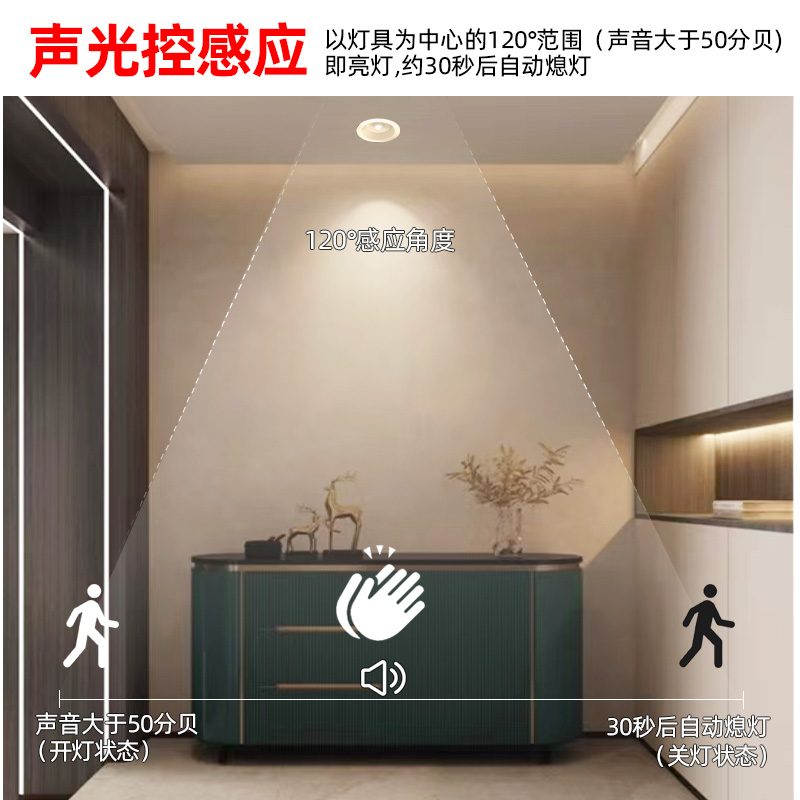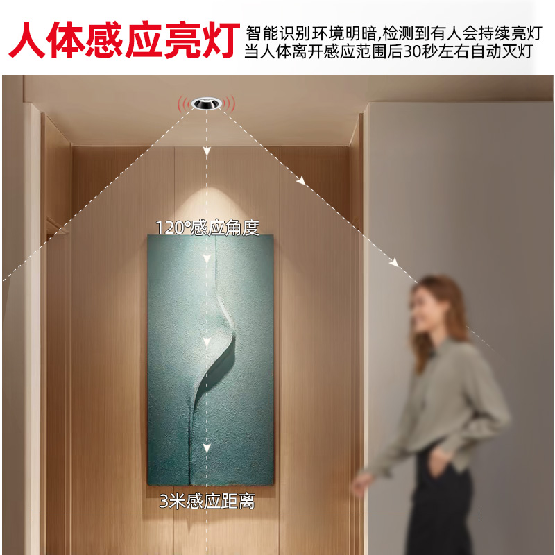 led超薄红外人体雷达感应筒灯嵌入式物业家用过道声控天花顶射灯